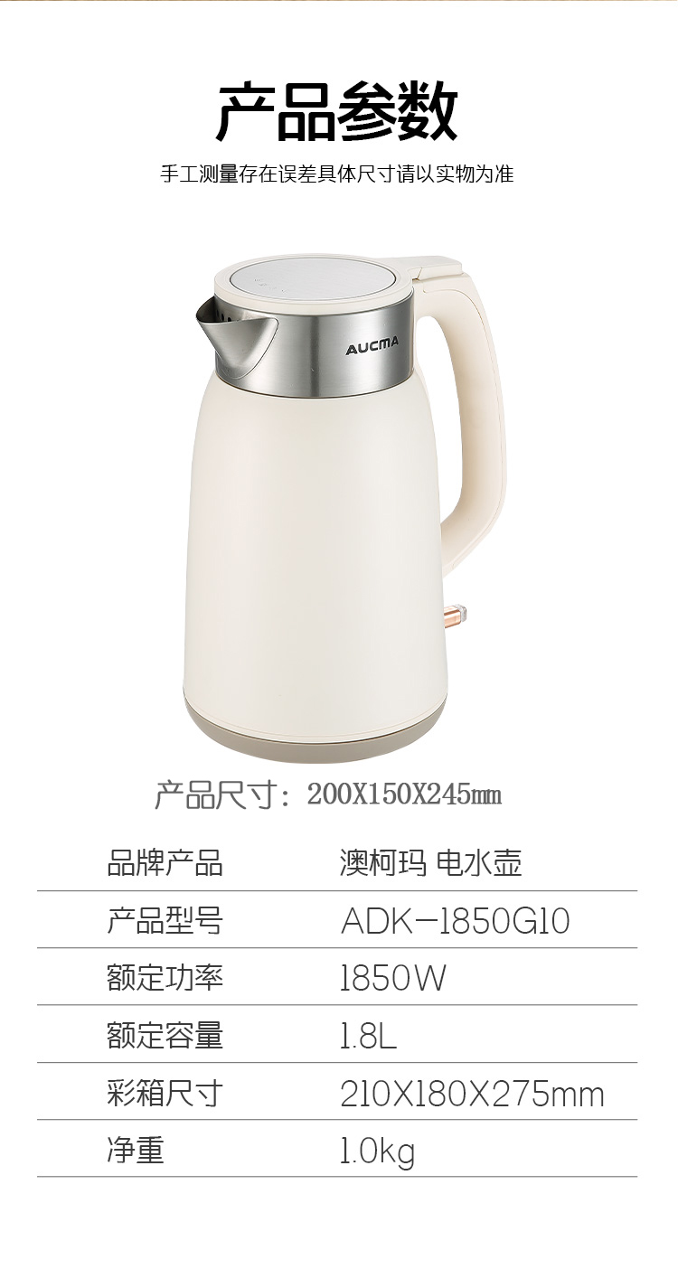 商品名称:AUCMA/澳柯玛1.8升电水壶ADK-1850G10