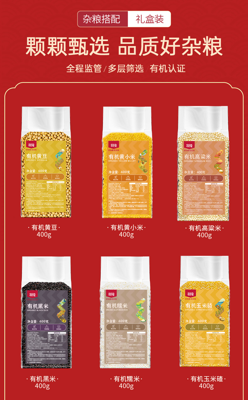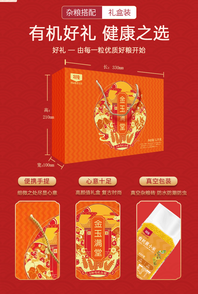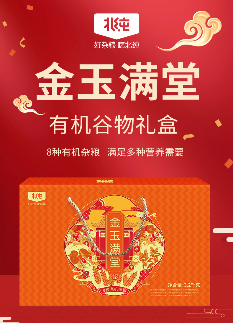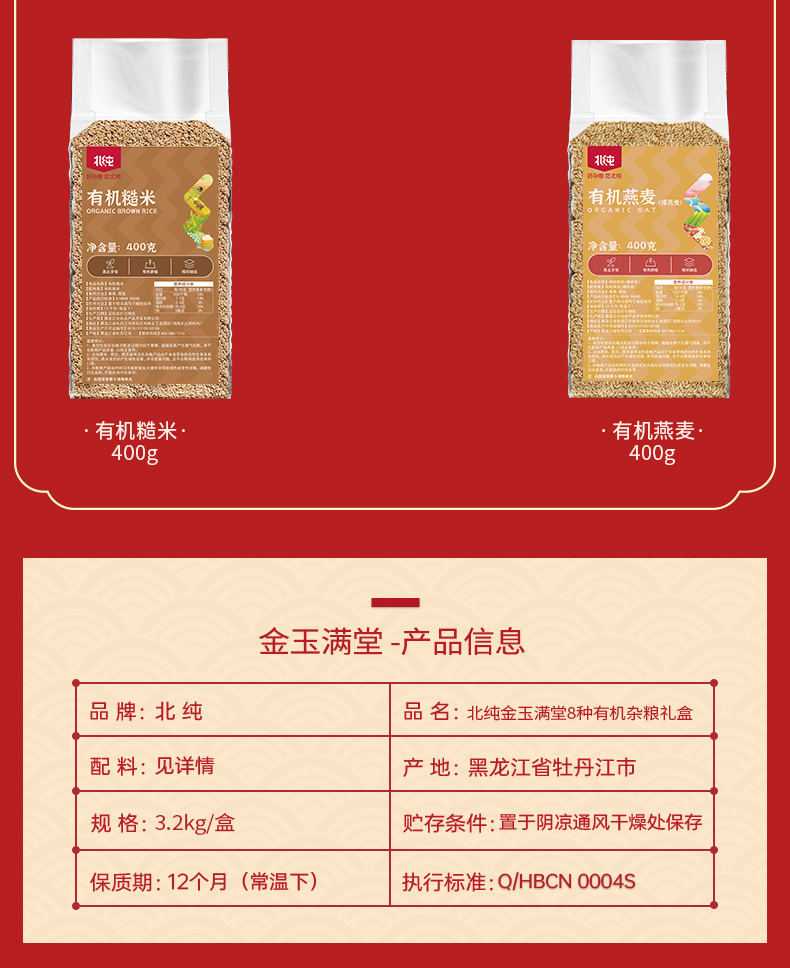 商品名称:北纯金玉满堂八种有机杂粮礼盒3.2kg