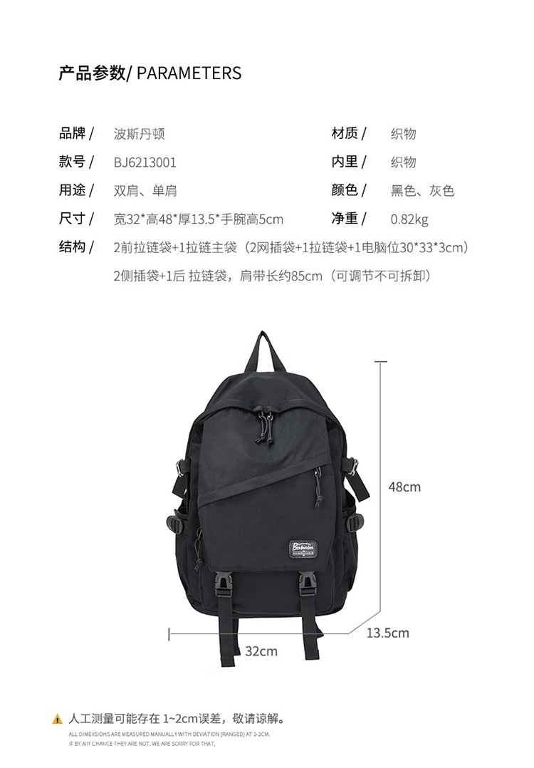 商品名称:BOSTANTEN/波斯丹顿双肩包-黑色BJ6213001