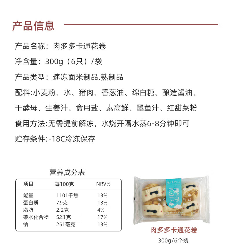 商品名称:爱稞云点卡通肉多多花卷300g