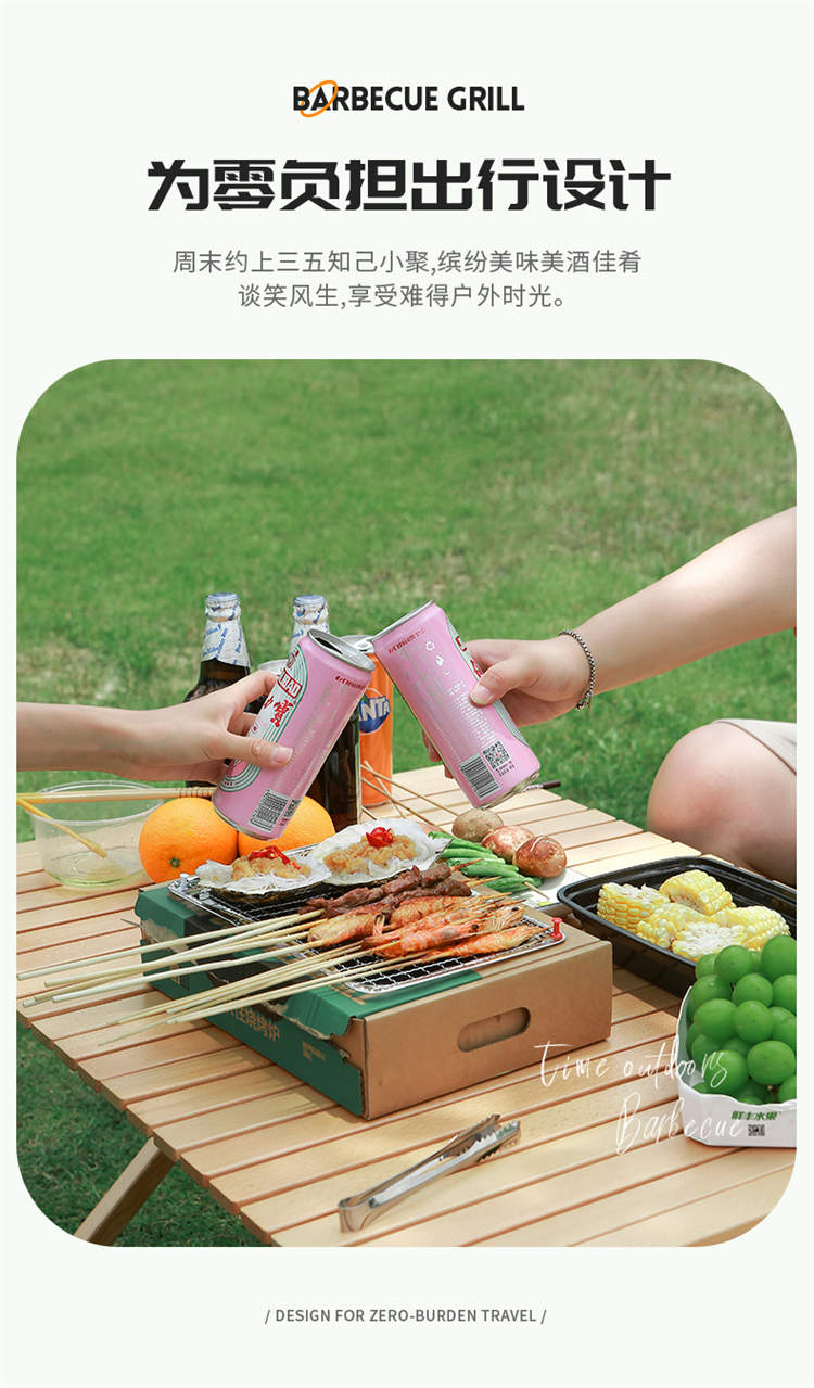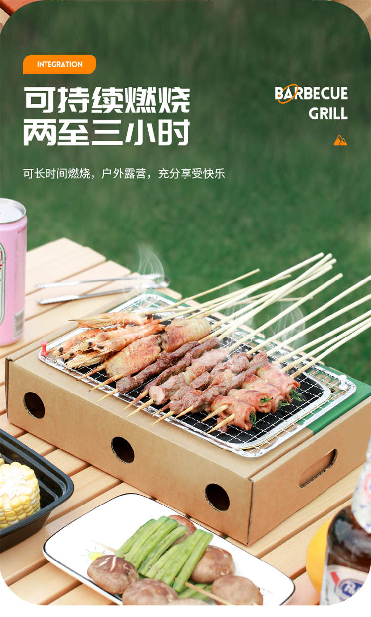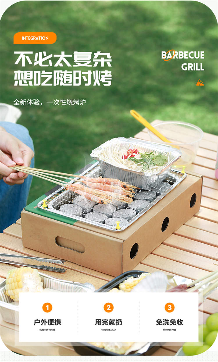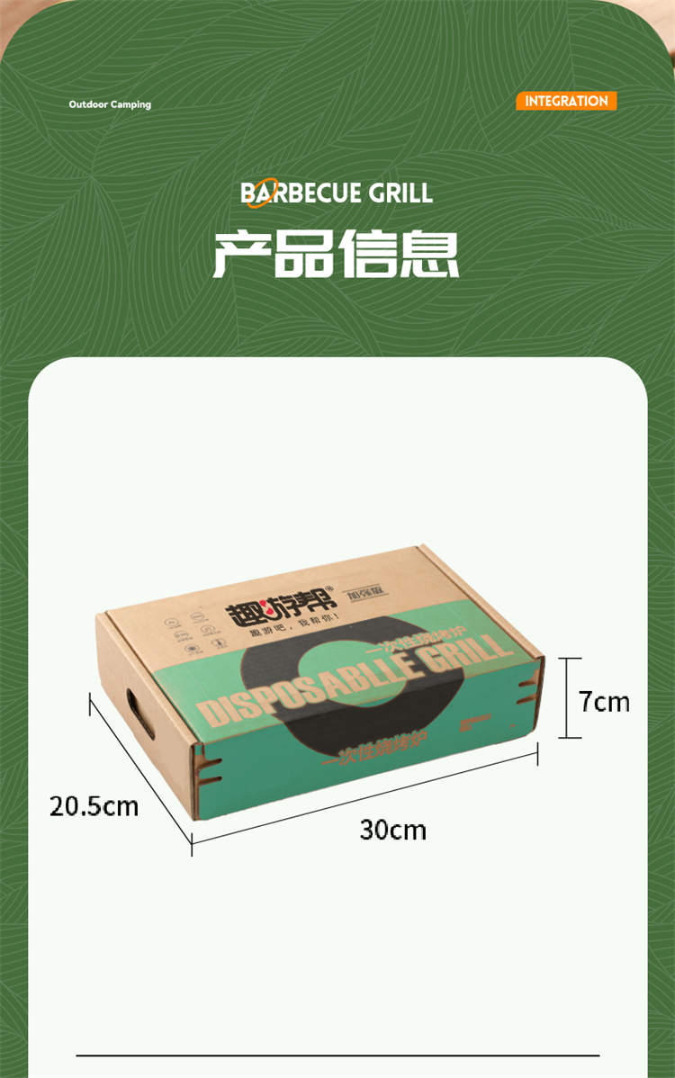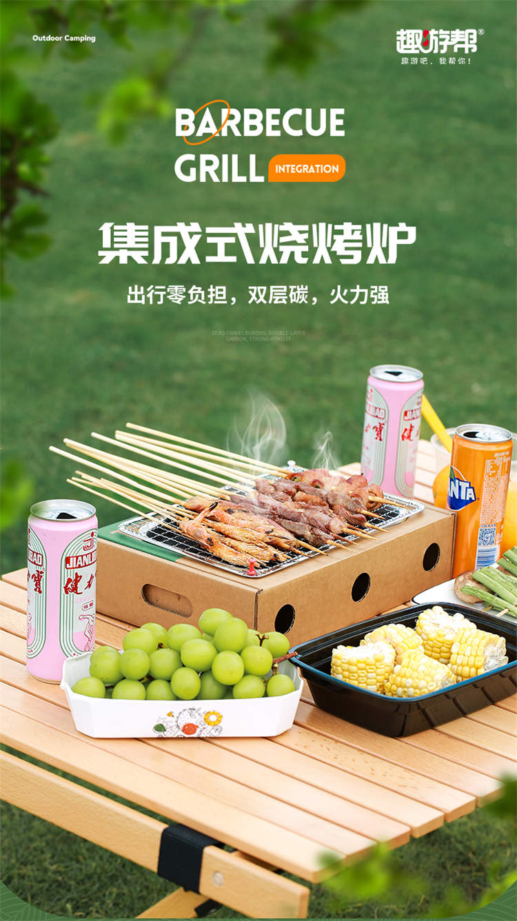 商品名称:趣游帮自带速燃碳一次性便携懒人烧烤炉YB02
