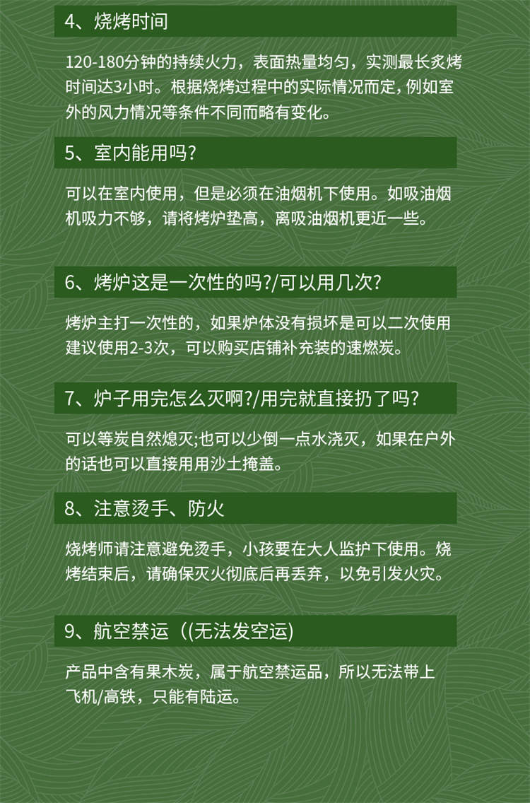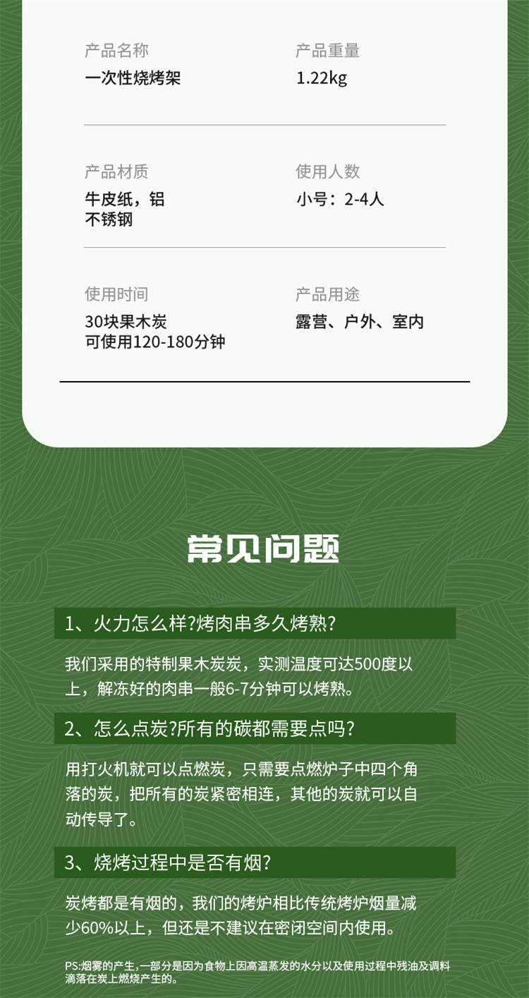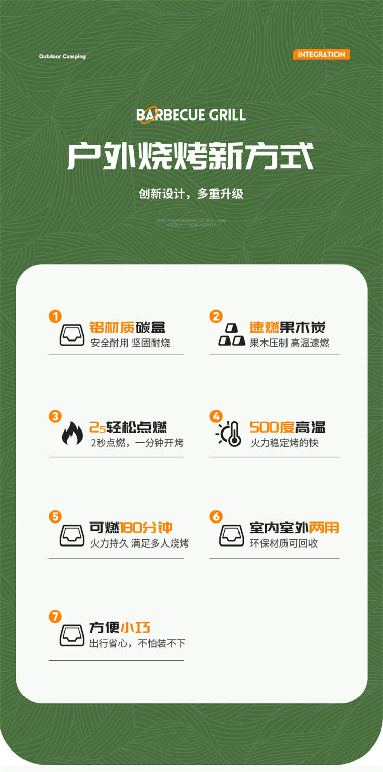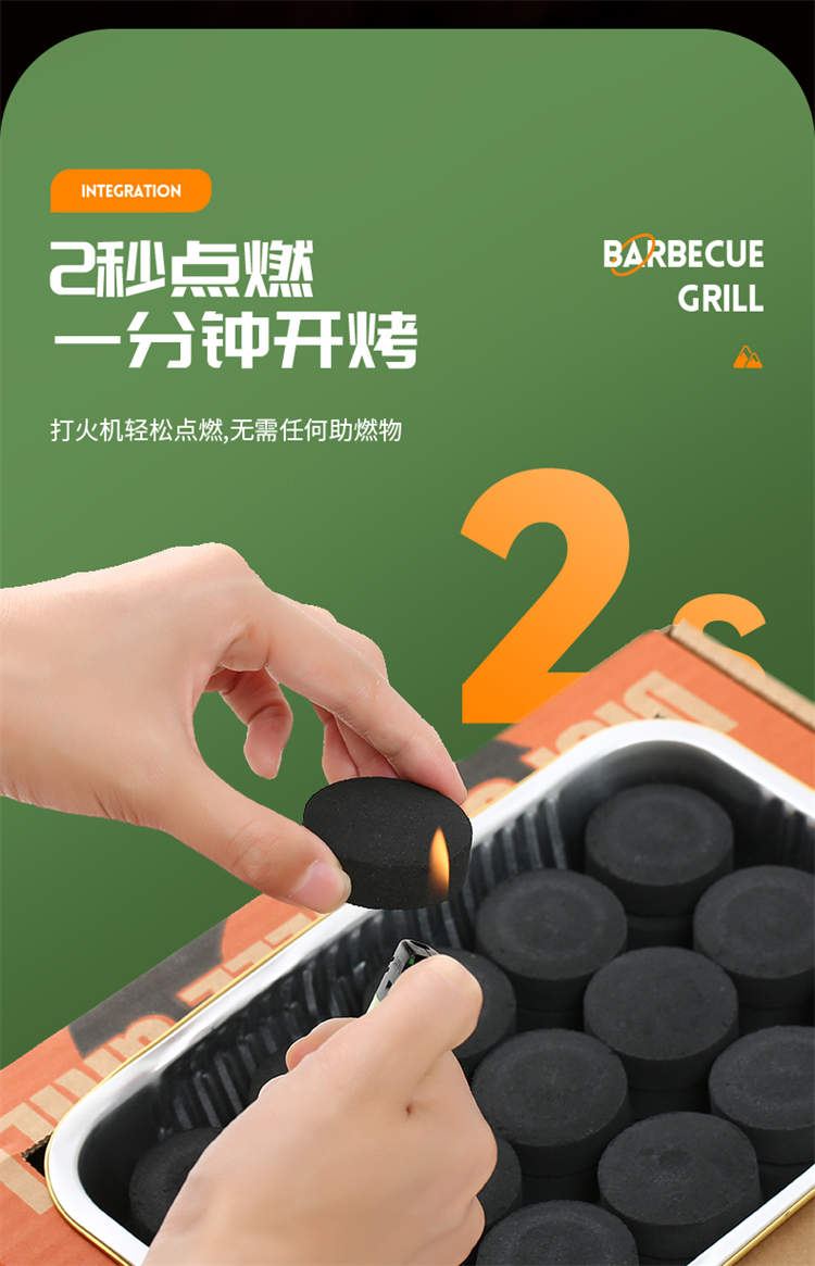 商品名称:趣游帮自带速燃碳一次性便携懒人烧烤炉YB02