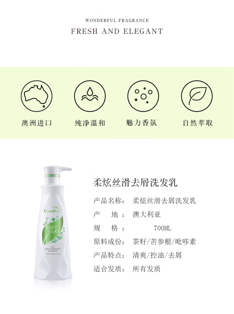 商品名称:GreenKosy/绿色溪谷柔炫丝滑去屑洗发乳700ml