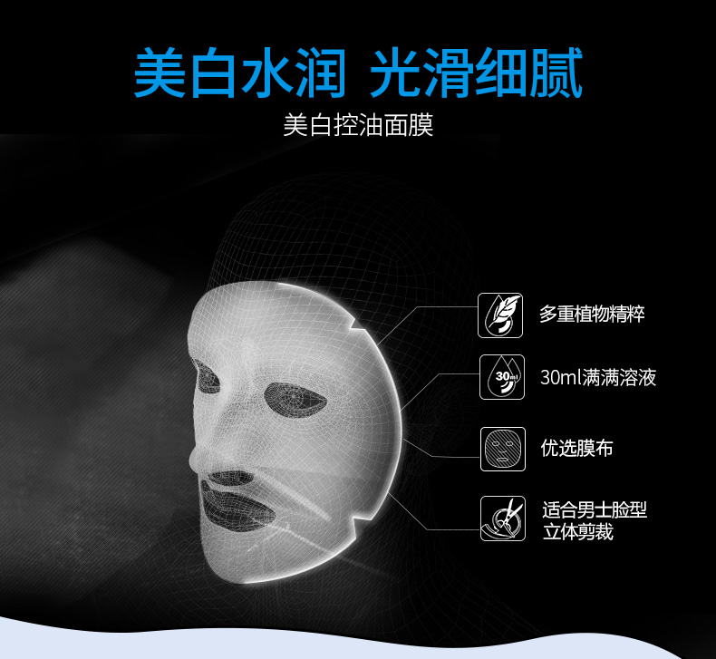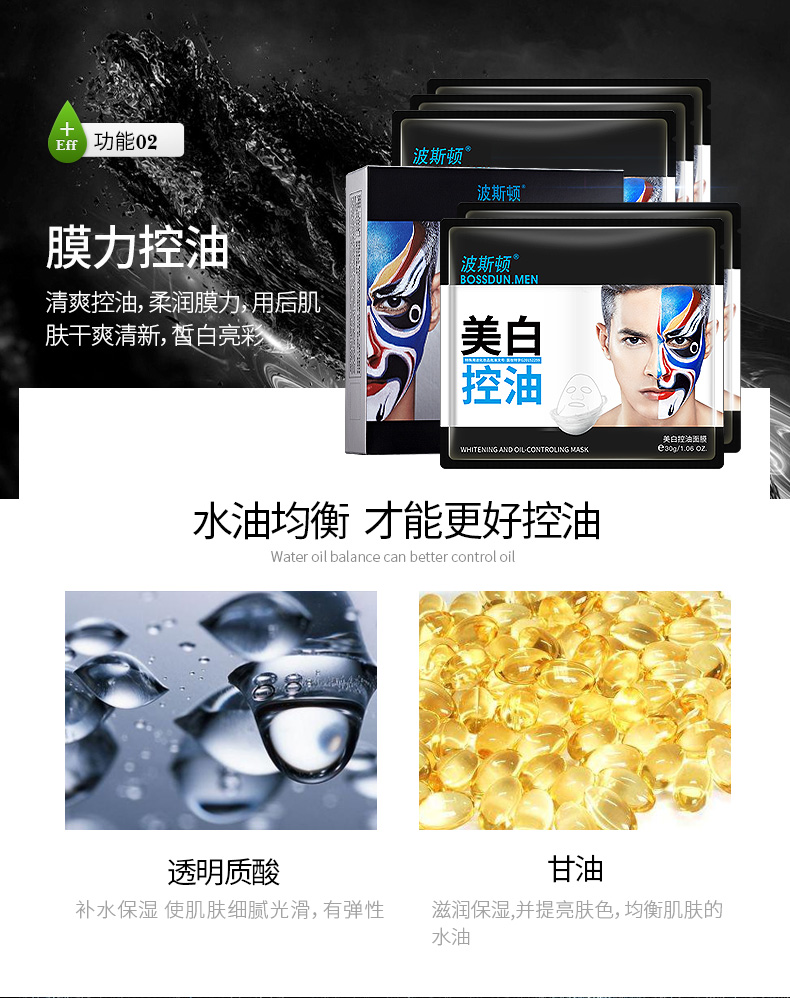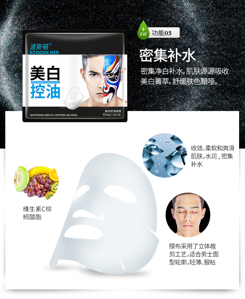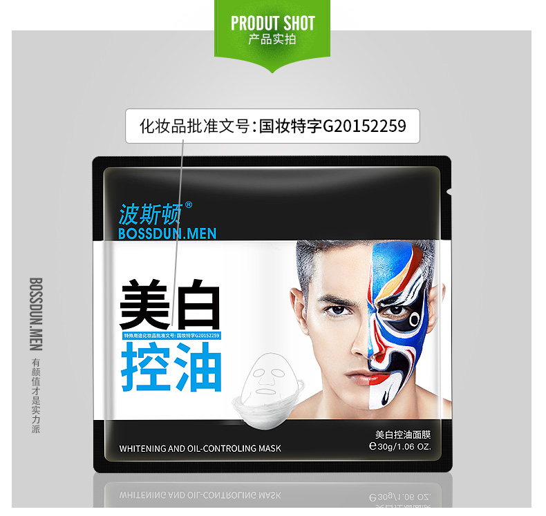 商品名称:BOSSDUN.MEN/波斯顿蓝脸谱美白控油面膜整盒30片