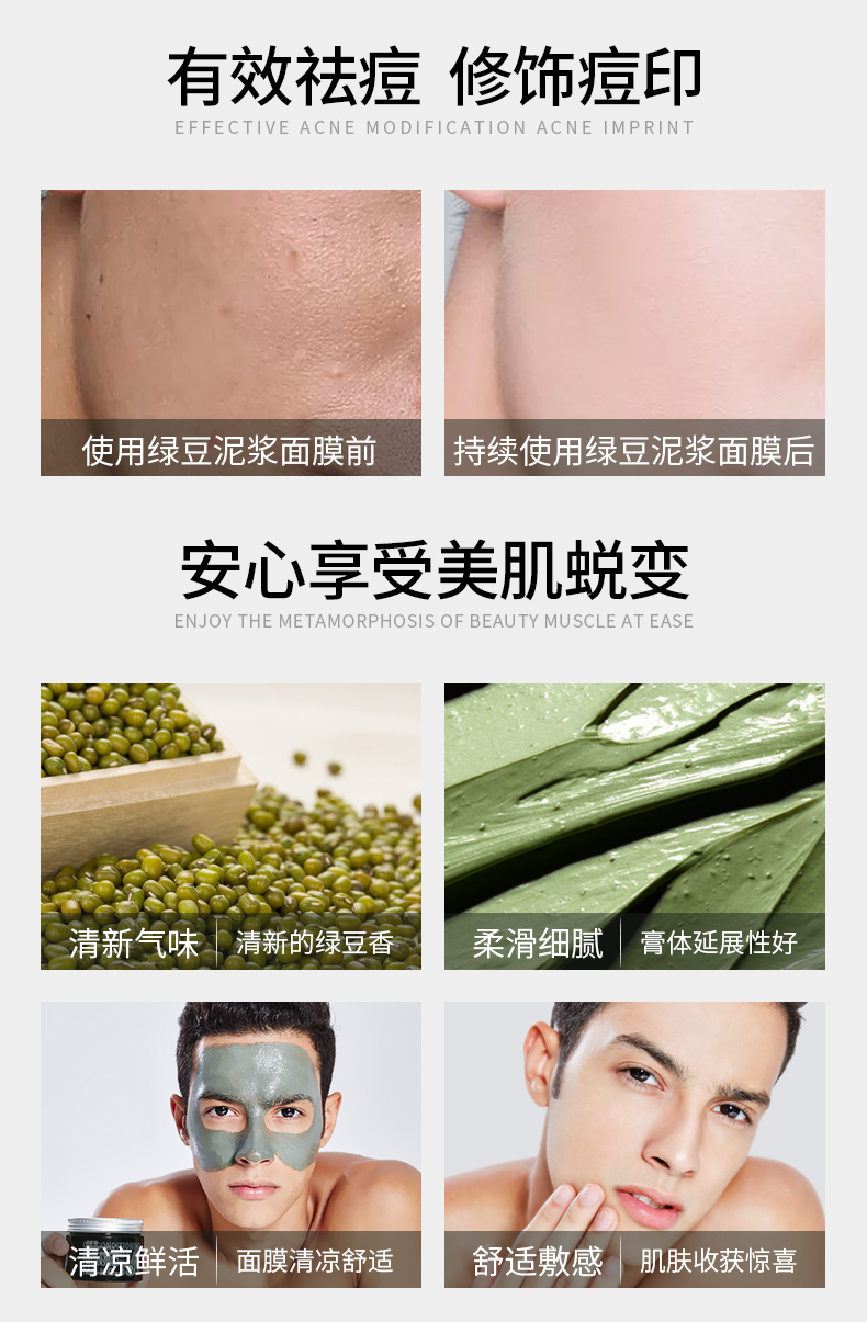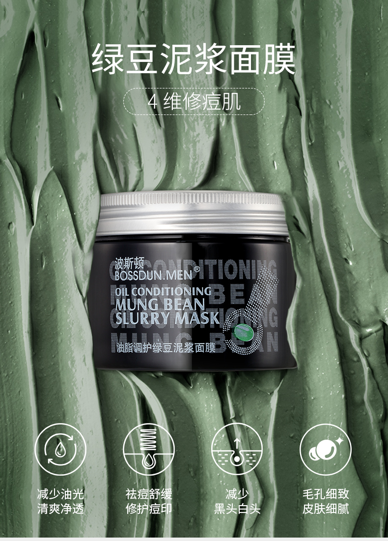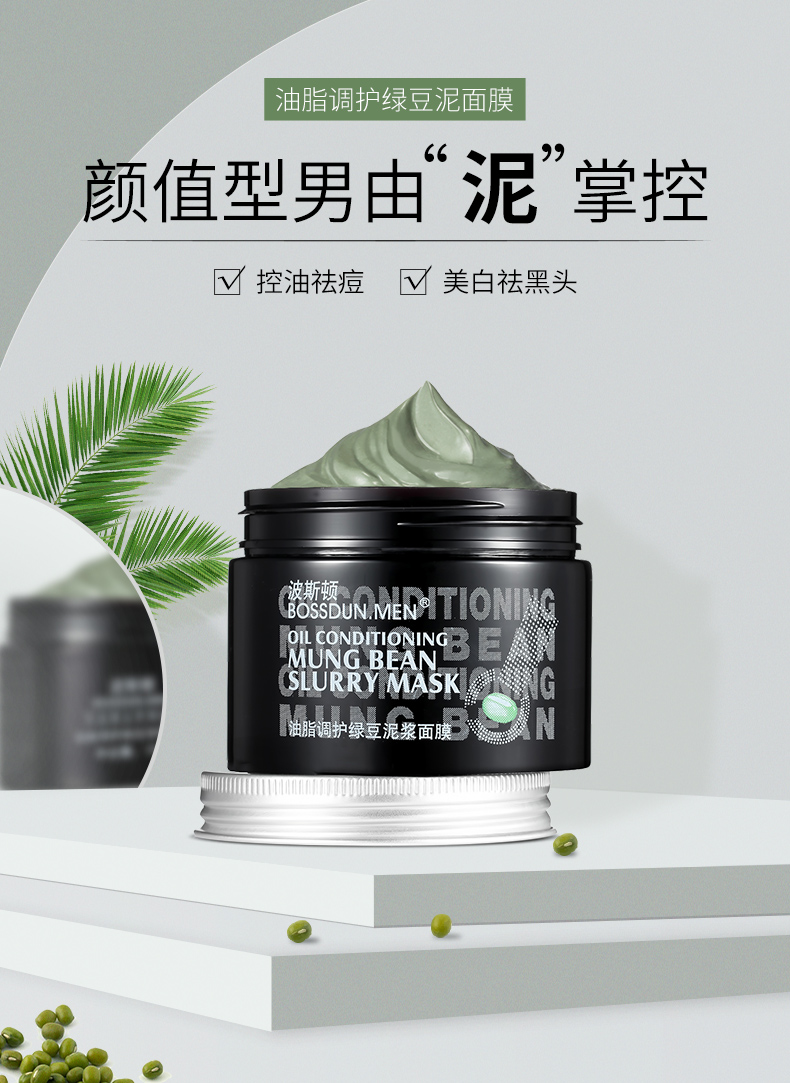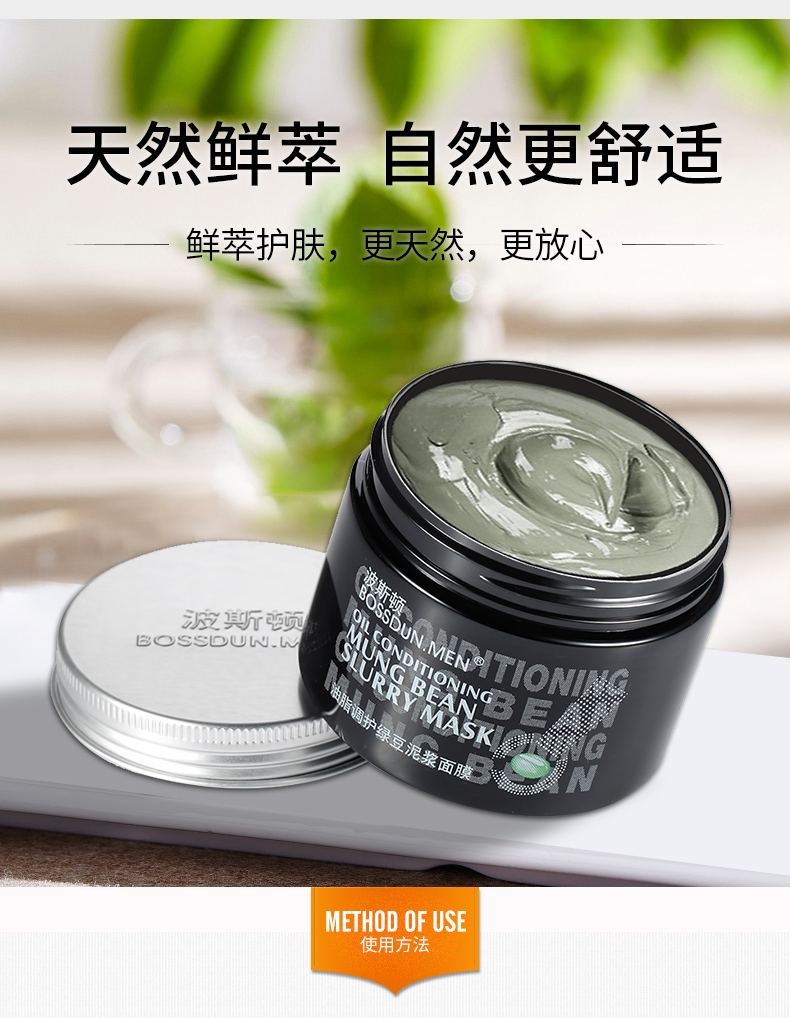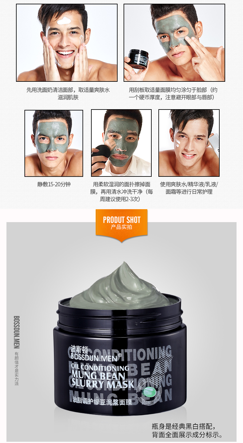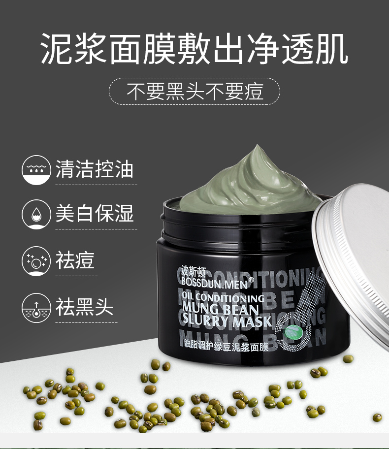 商品名称:BOSSDUN.MEN/波斯顿油脂调护绿豆泥浆面膜150g