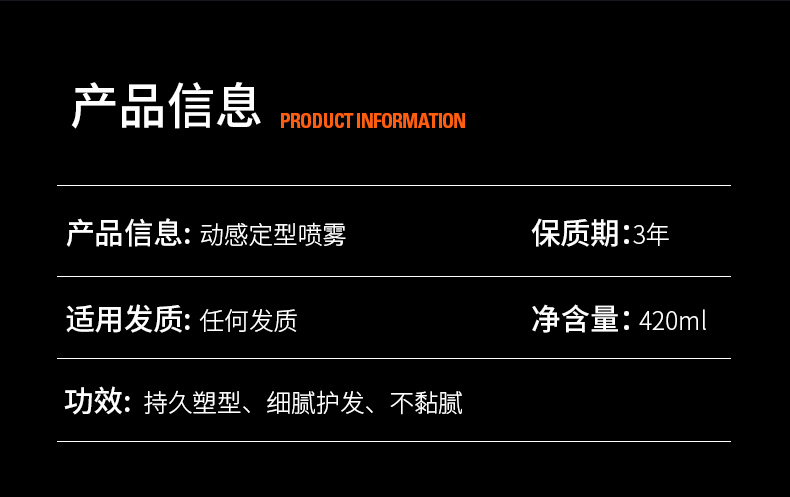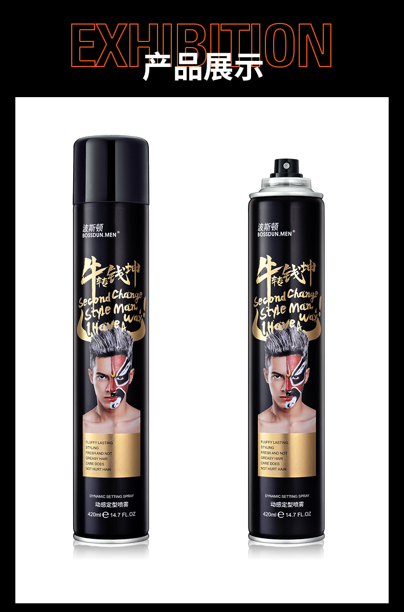 商品名称:BOSSDUN.MEN/波斯顿动感造型喷雾420ml*2瓶
