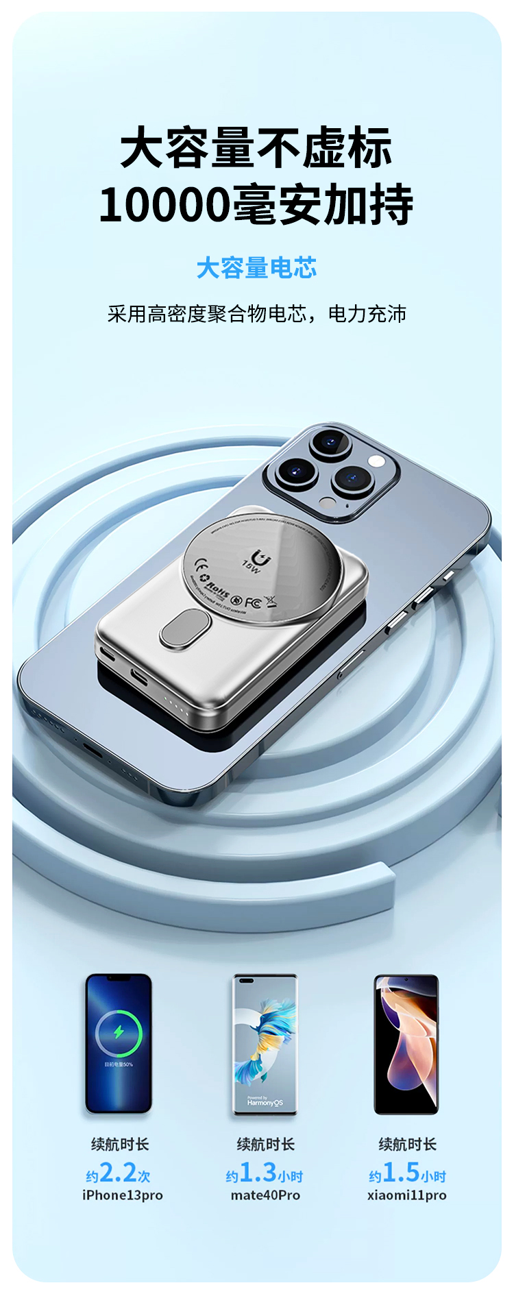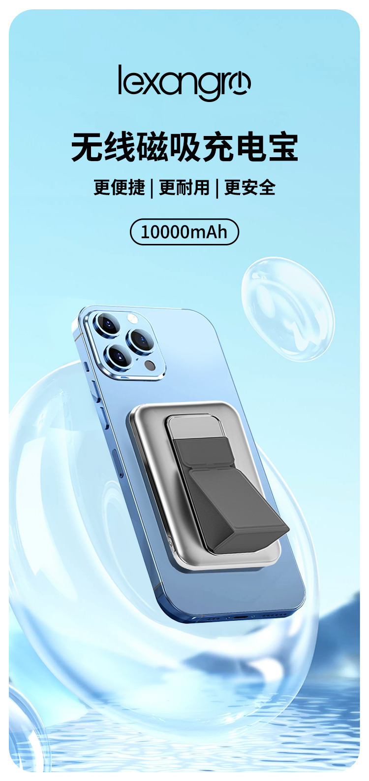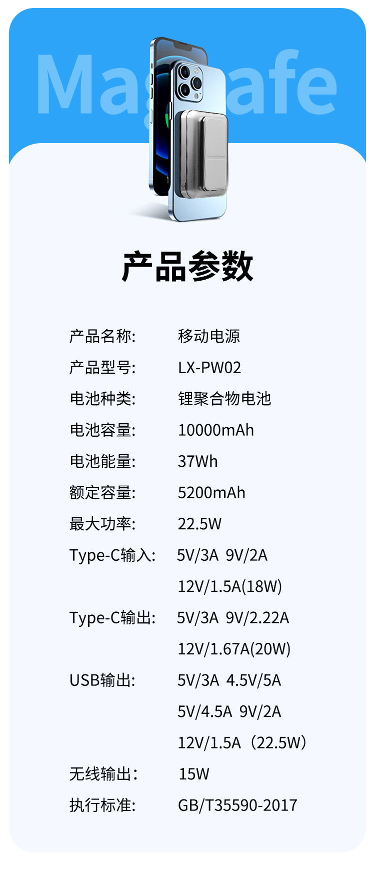 商品名称:乐享10000毫安无线磁吸移动电源LX-PW02
