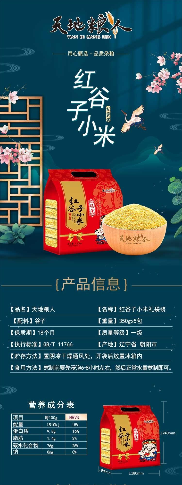 商品名称:天地粮人东北红谷子小米礼袋装1750g