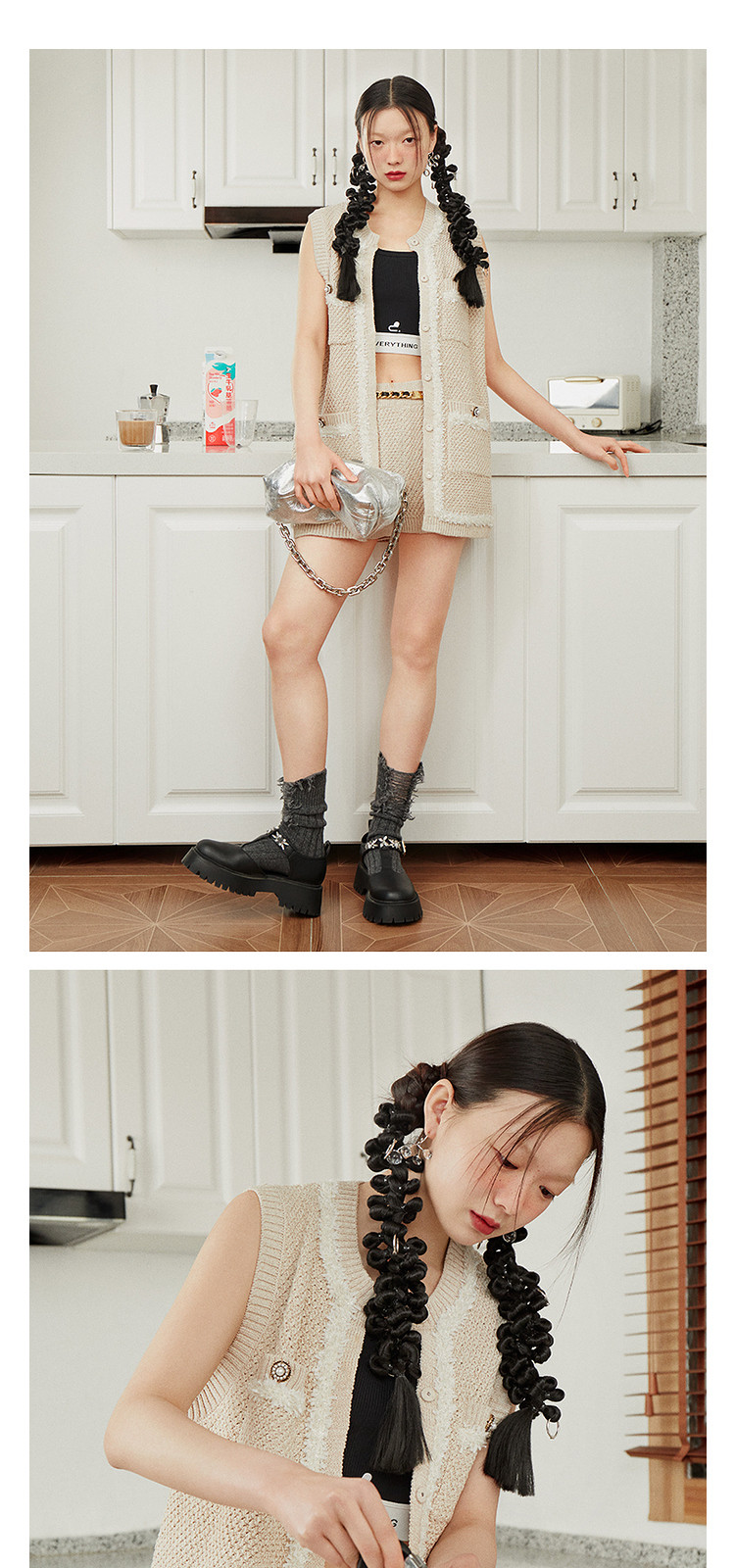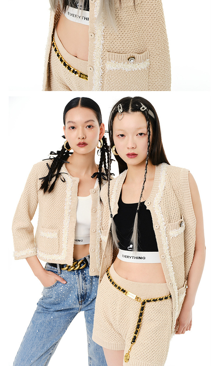 地素夏秋专柜休闲精致甜酷无袖外套针织衫开衫女 688523