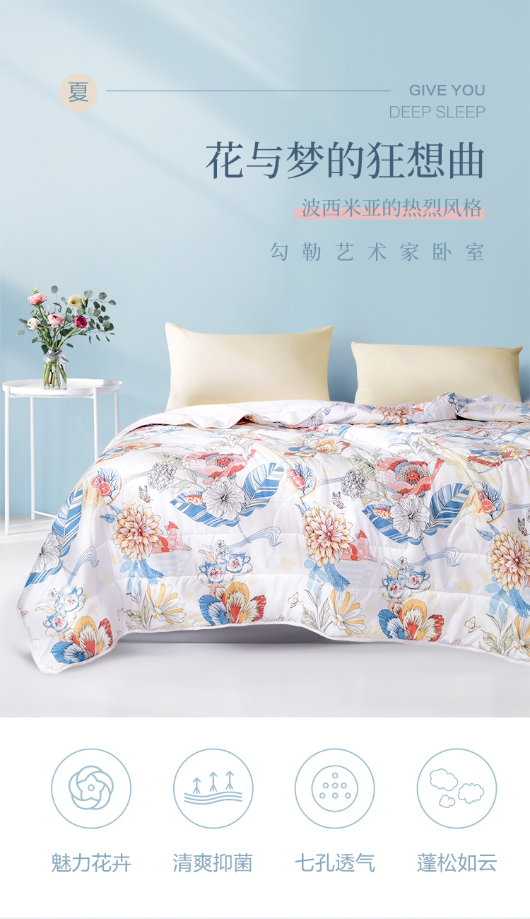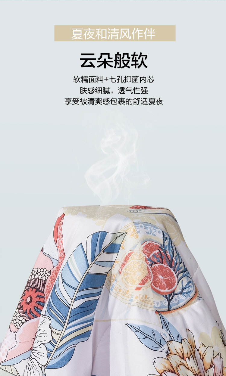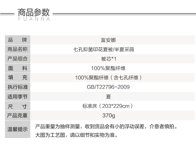 商品名称:FUANNA/富安娜半夏采薇七孔抗菌印花空调被203*229cm 370g