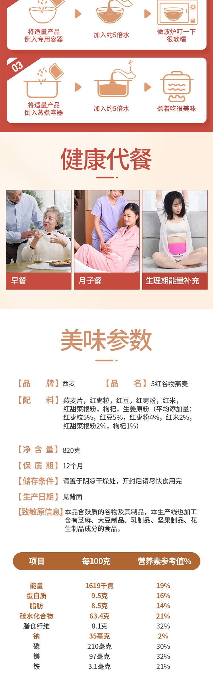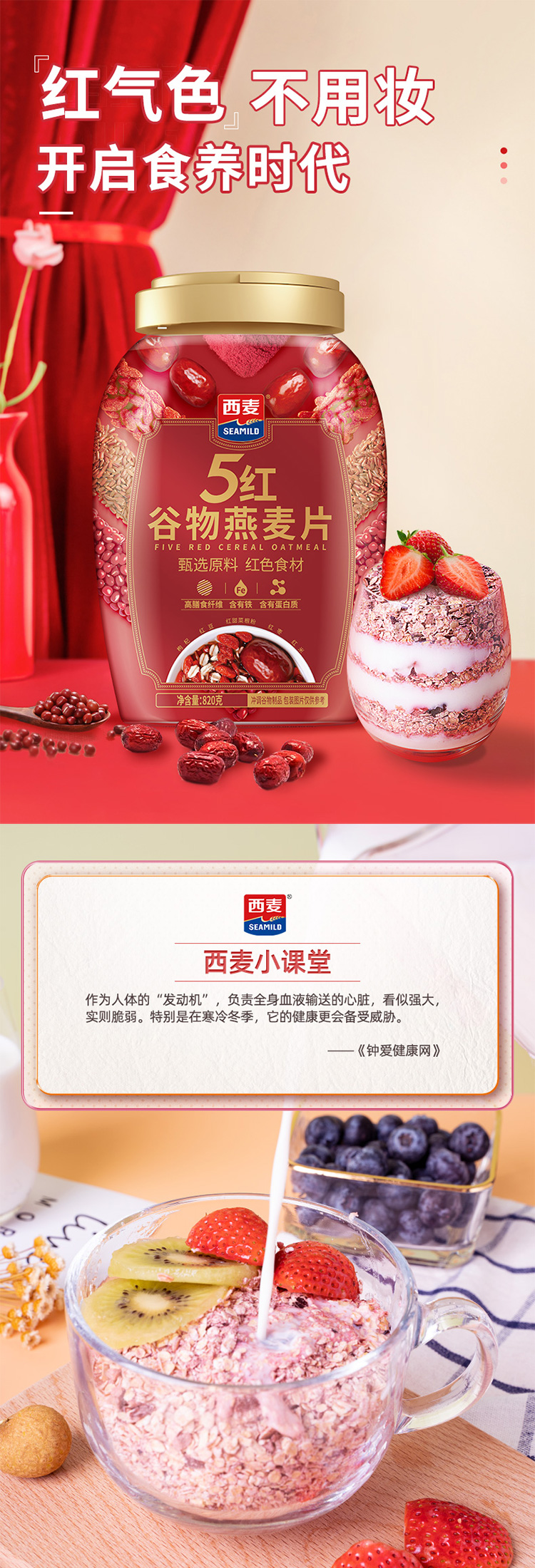商品名称:SEAMILD/西麦五红谷物燕麦片820g*2罐