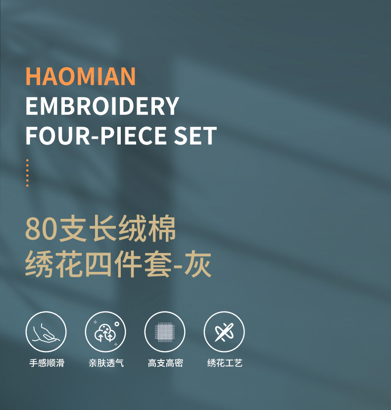商品名称:【顺丰配送】恒源祥80支长绒棉绣花床品四件套200*230cm