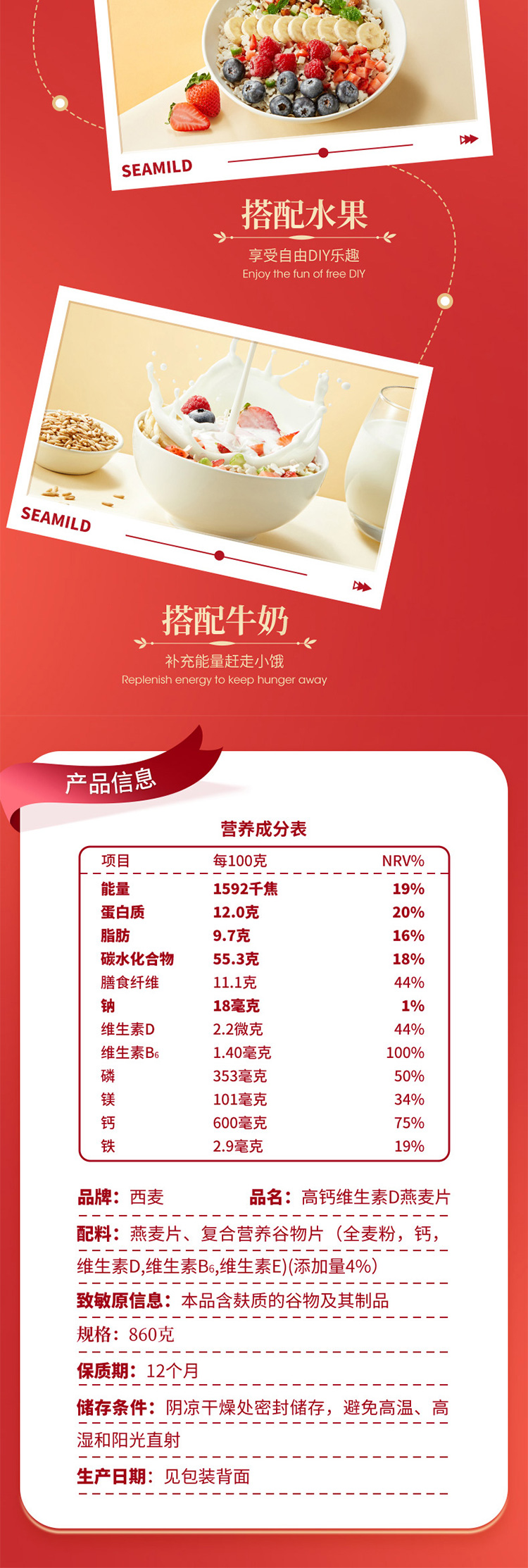 商品名称:SEAMILD/西麦高钙维生素D燕麦片860g*2罐