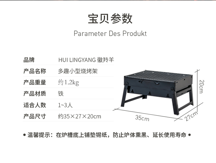 商品名称:徽羚羊小型烧烤架 HLY-KL001