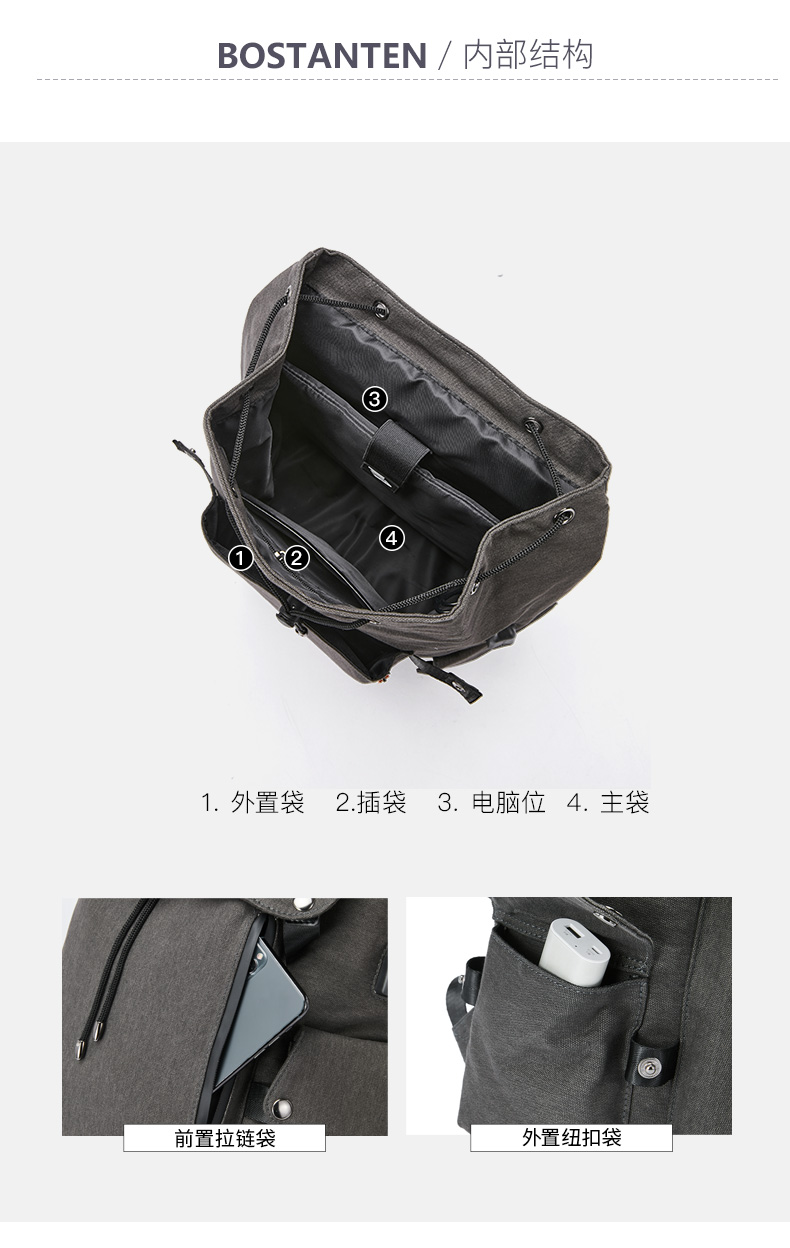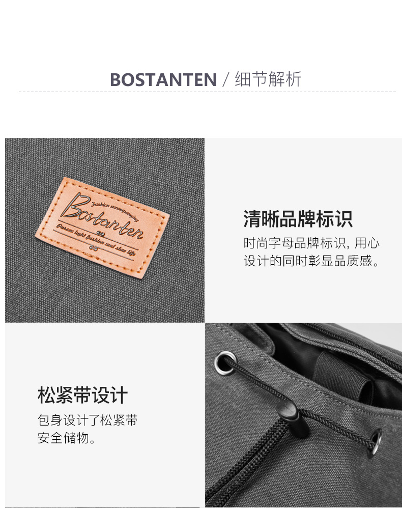 商品名称:BOSTANTEN/波斯丹顿双肩包-灰色BJ6204191