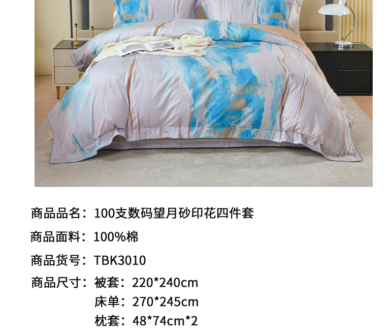 商品名称:【顺丰配送】恒源祥纯棉100支数码望月砂印花床品四件套220*240cm