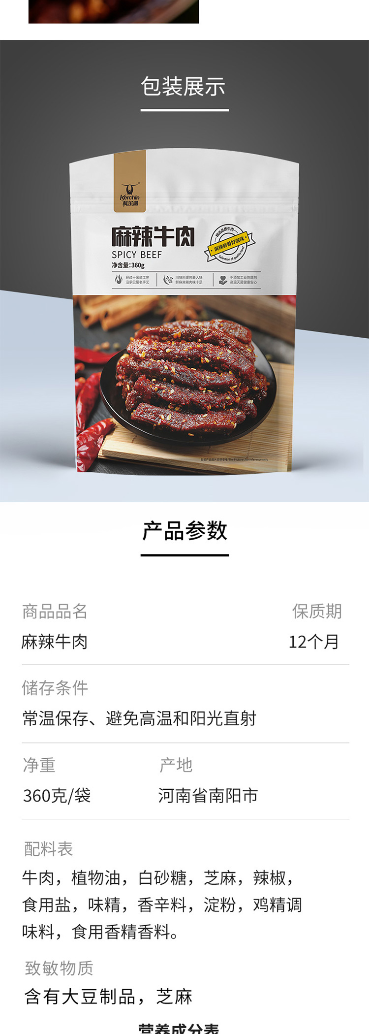 商品名称:Kerchin/科尔沁麻辣牛肉360g