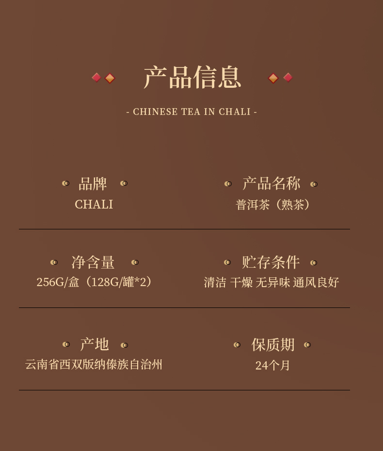 商品名称:CHALI/茶里普洱熟茶罐装礼盒256g