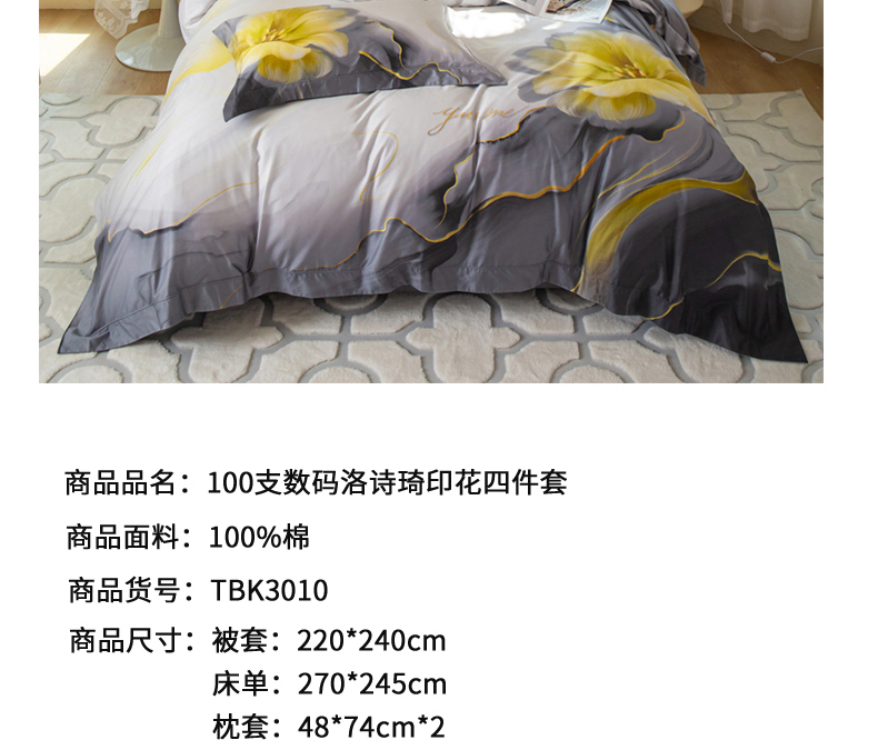 商品名称:【顺丰配送】恒源祥纯棉100支数码洛诗琦印花床品四件套220*240cm