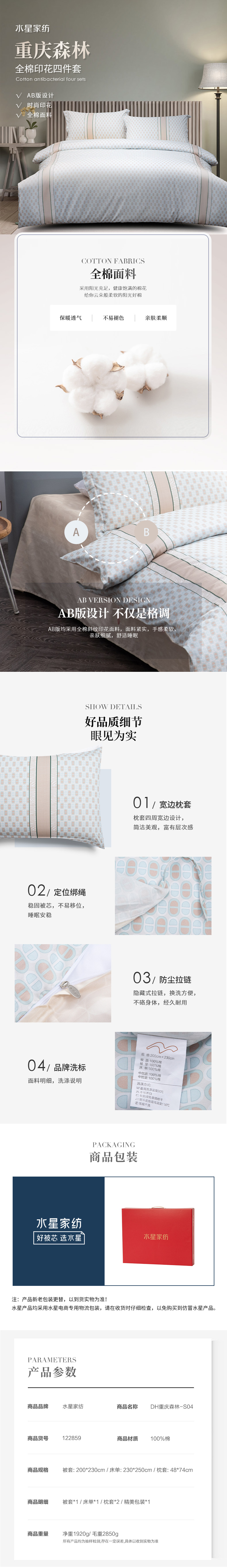 商品名称:【京东配送】水星家纺重庆森林全棉印花床品四件套200*230cm