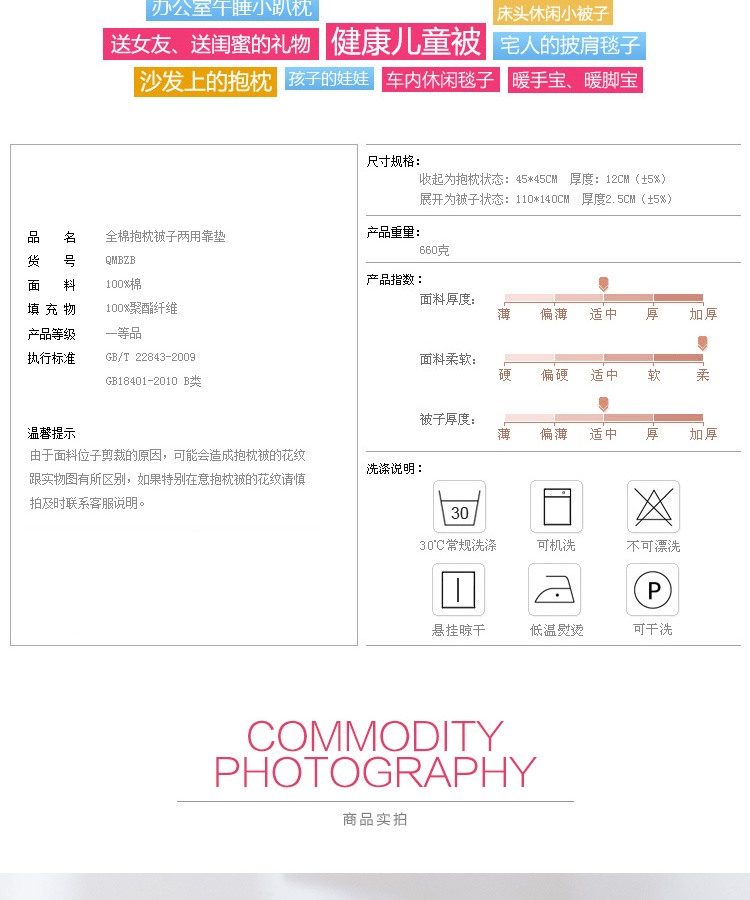 商品名称:【顺丰配送】恒源祥牡丹花全棉多功能靠垫被