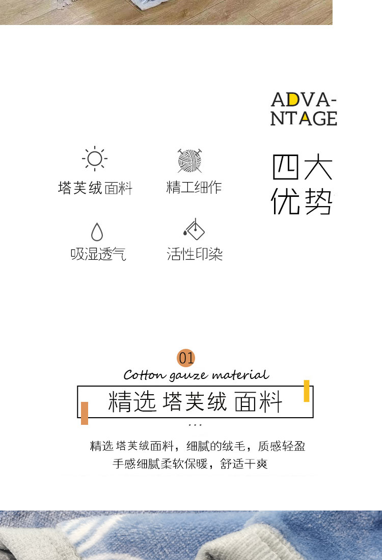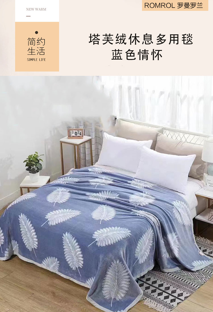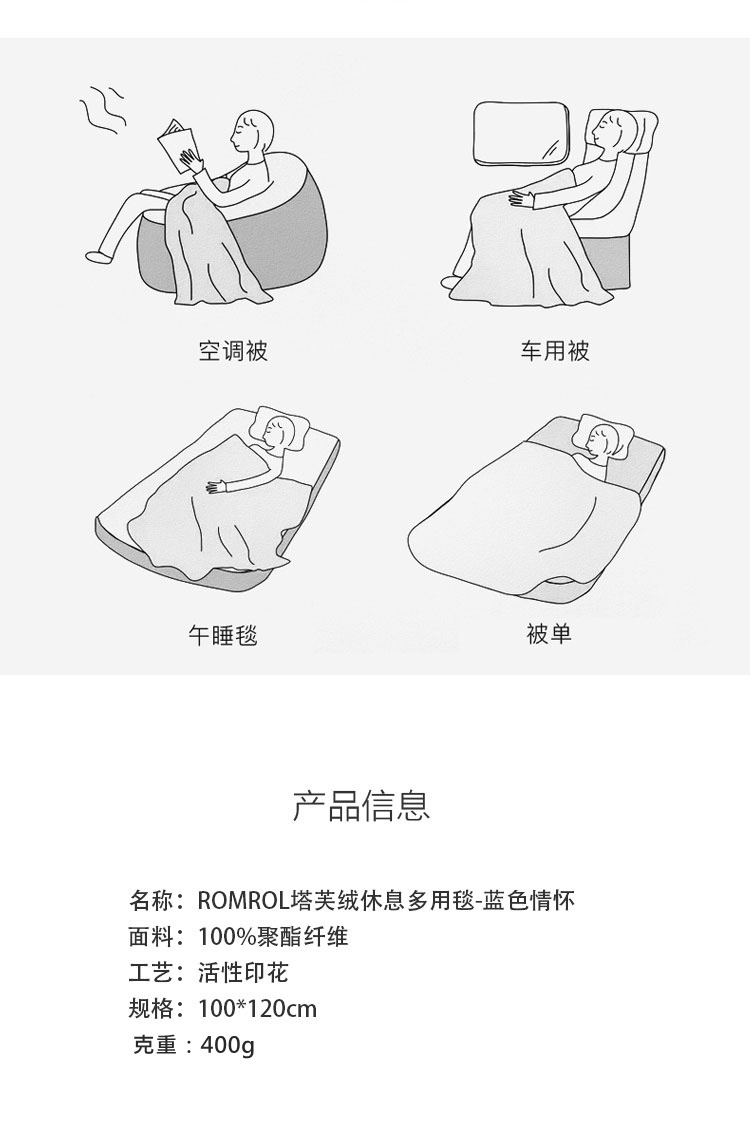 商品名称:ROMROL/罗曼罗兰蓝色情怀塔芙绒多用毯100*120cm 400g