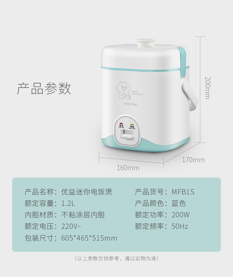 商品名称:Yoice/优益1.2升迷你电饭煲Y-MFB1