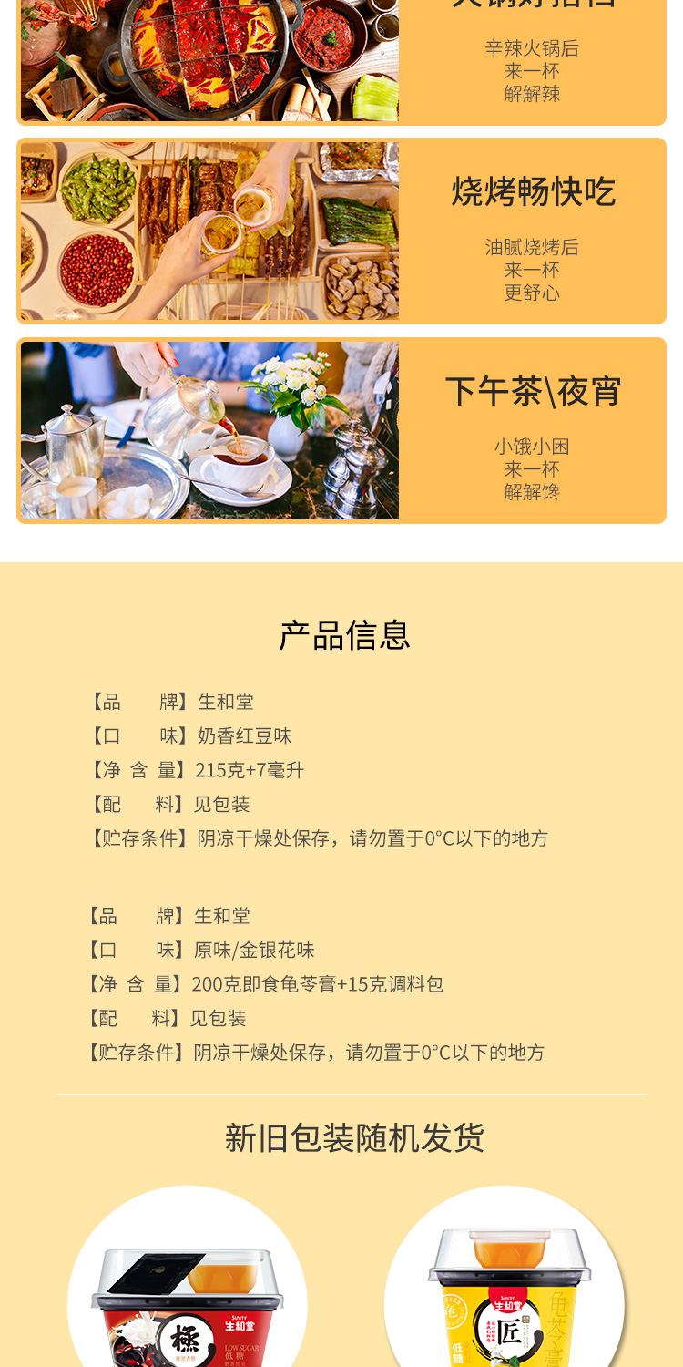 商品名称:生和堂原味奶香红豆味金银花味低糖即食龟苓膏组合1956g*2份