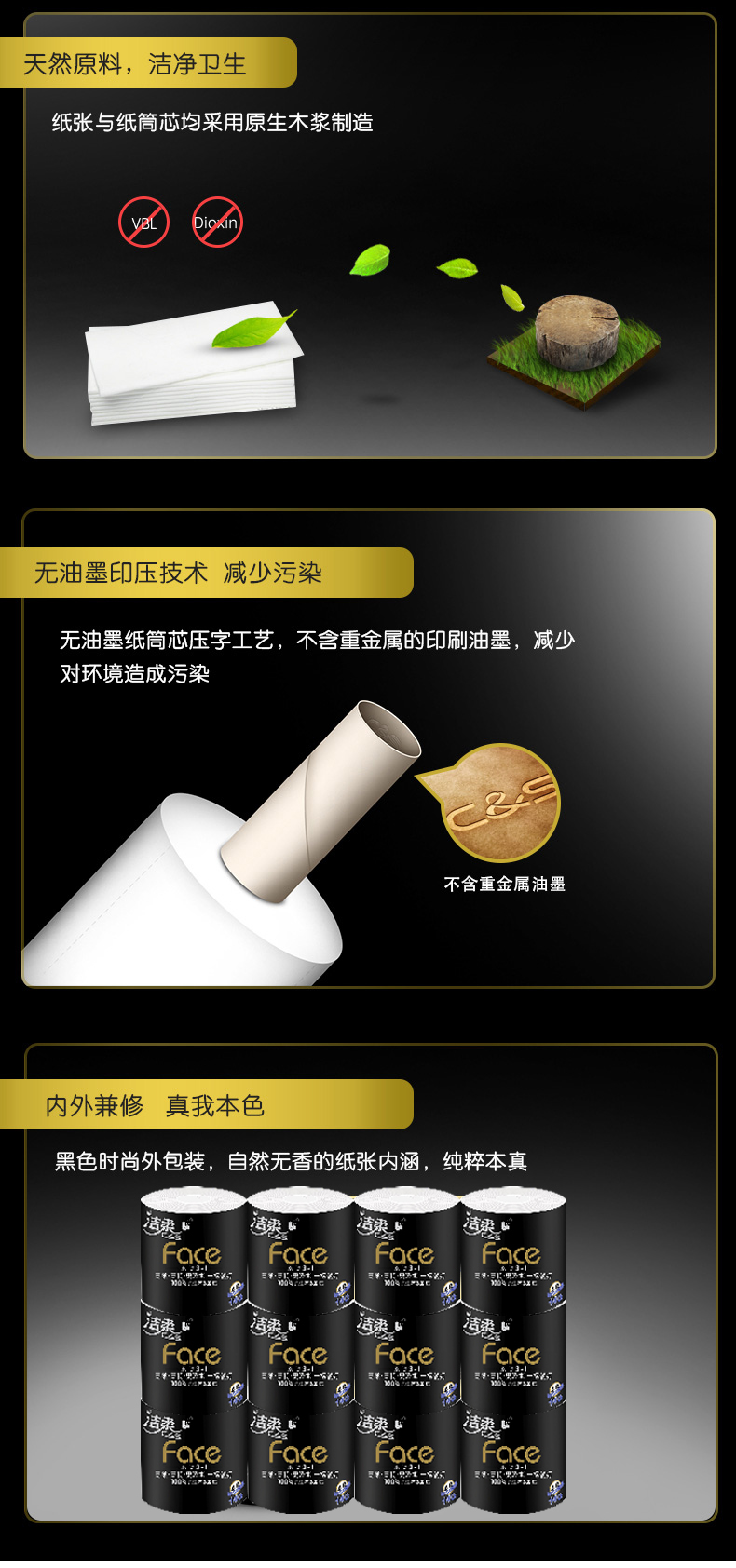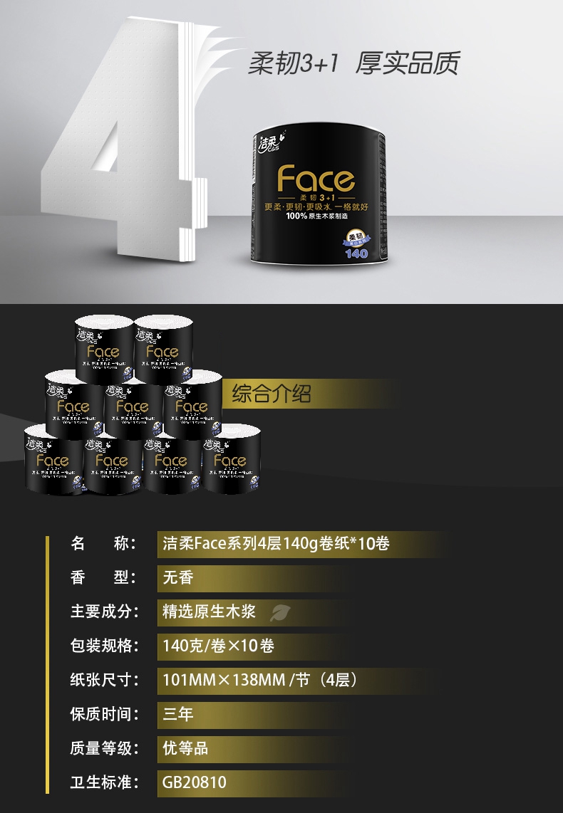 商品名称:C&S/洁柔黑Face系列有芯卷纸4层140g*10卷*2提
