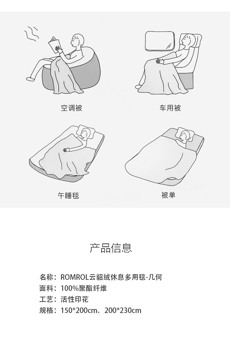 商品名称:ROMROL/罗曼罗兰几何云貂绒休息毯