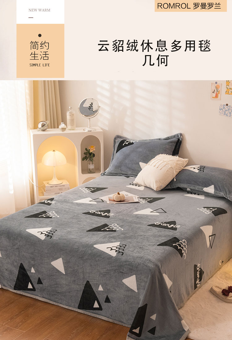 ROMROL/罗曼罗兰几何云貂绒休息毯