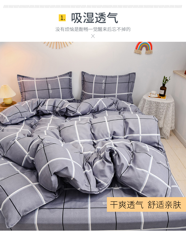 ROMROL/罗曼罗兰简约时尚芦荟棉印花床品四件套200*230cm