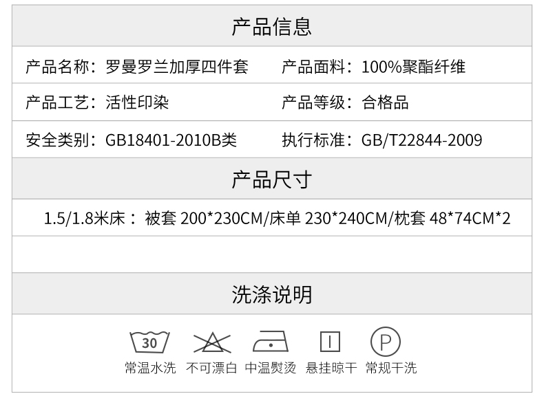 商品名称:罗曼罗兰 加厚磨毛印花四件套 摩登格调/200*230cm