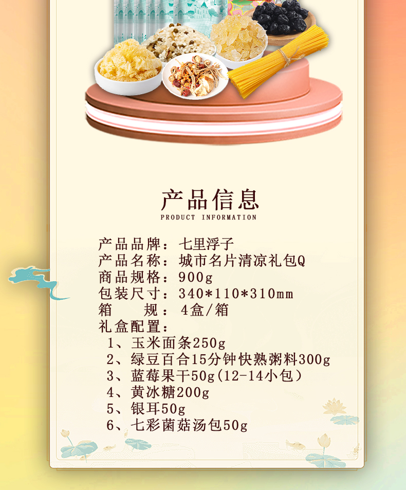 商品名称:七里浮子Q款城市名片清凉礼盒900g