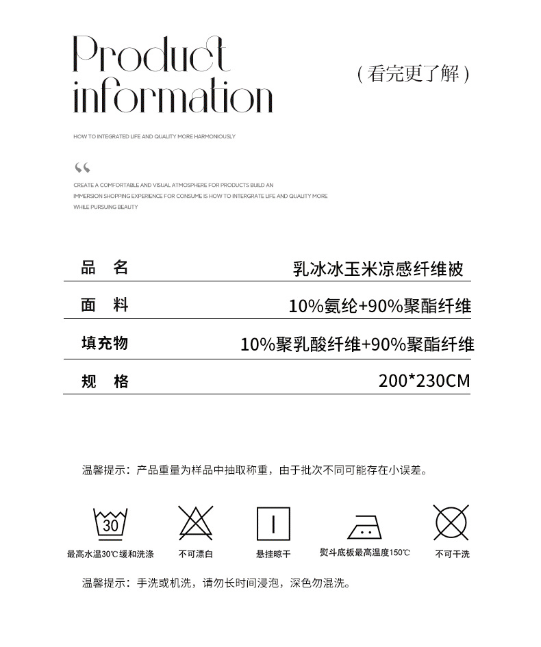 商品名称:【顺丰配送】恒源祥乳冰冰玉米凉感纤维被200*230cm 440g