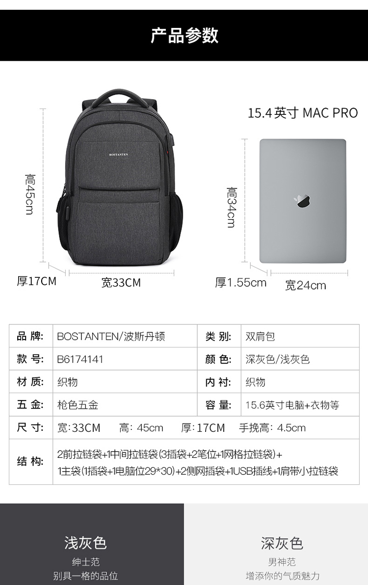 商品名称:BOSTANTEN/波斯丹顿双肩包B6174141