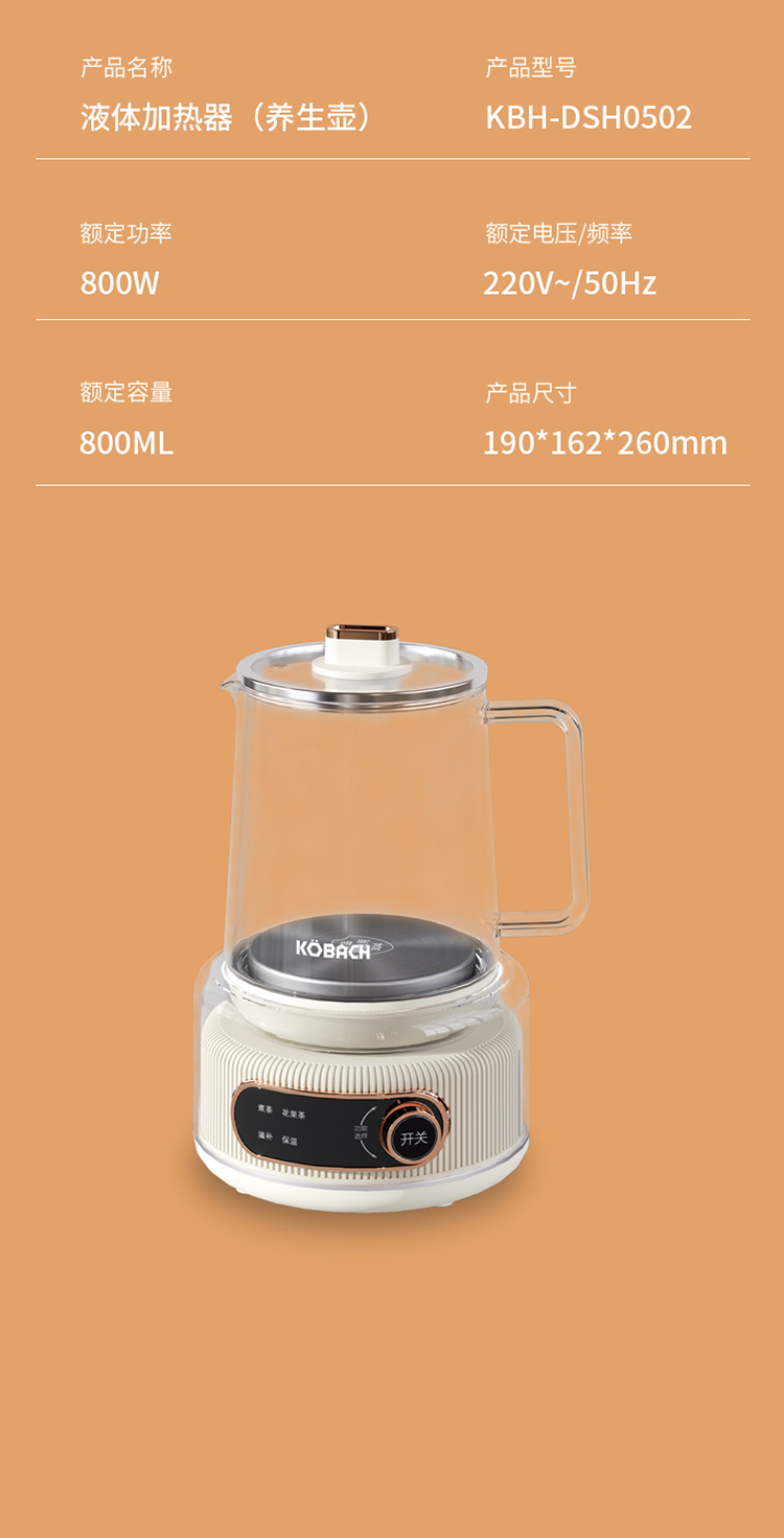 商品名称:【德邦配送】KOBACH/康巴赫800毫升液体加热器KBH-DSH0502
