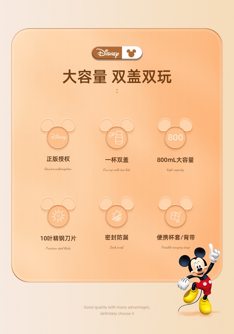 商品名称:DISNEY/迪士尼800毫升便携式吨吨果汁机DS-0810GZ