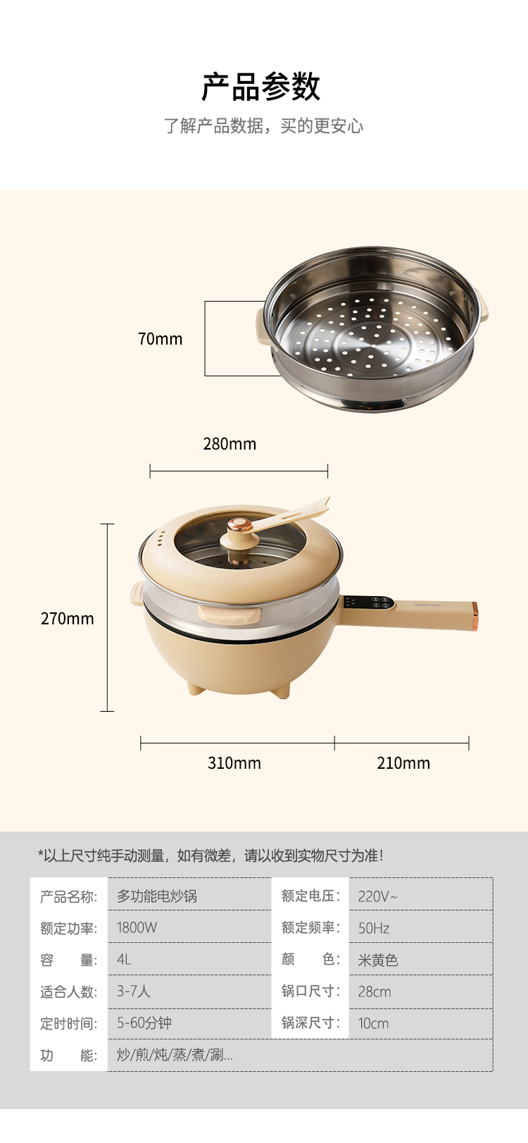 商品名称:oudim/欧点4升多功能电炒锅OD-CG118