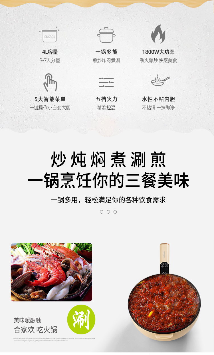 oudim/欧点4升多功能电炒锅OD-CG118