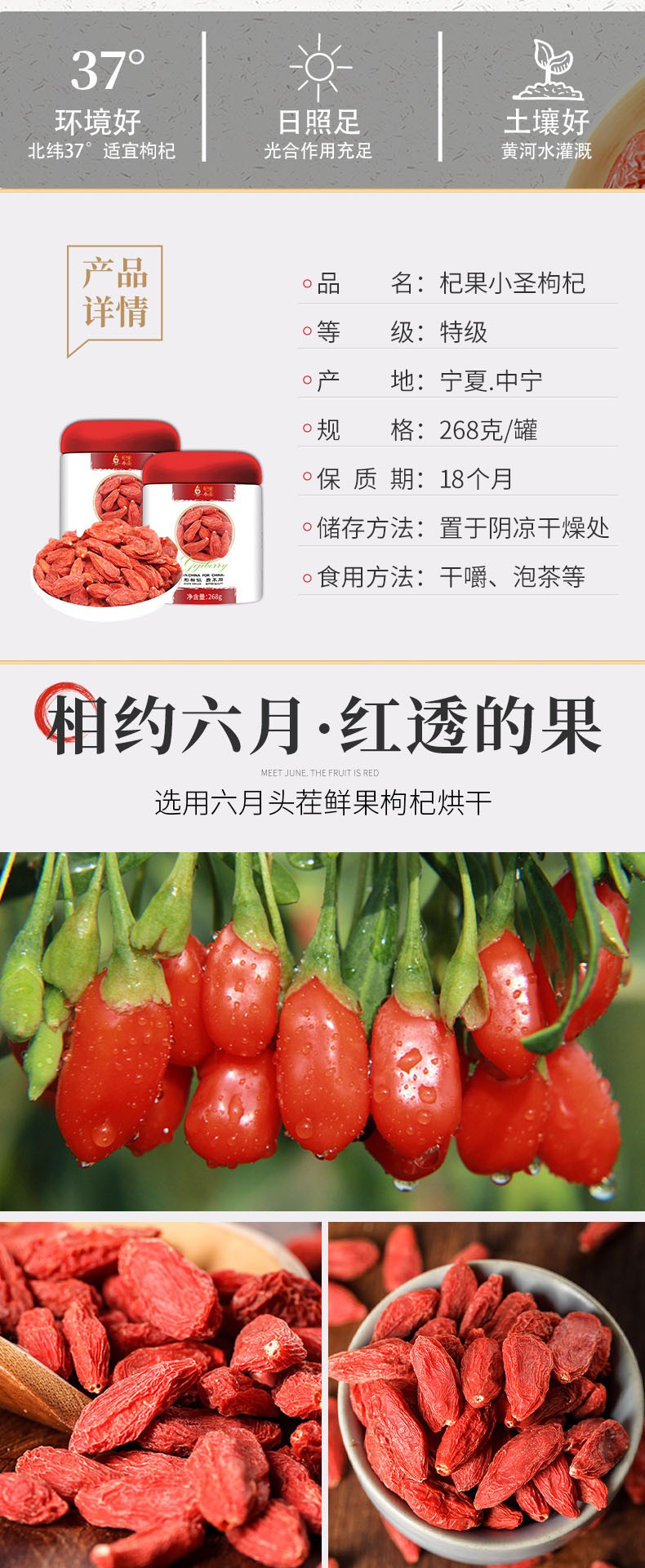 商品名称:杞果小圣特级红枸杞268g*2罐