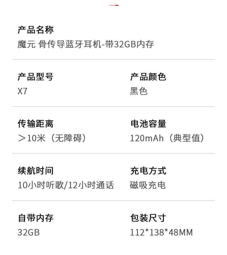 商品名称:MOYEEO/魔元带32GB内存骨传导蓝牙耳机X7
