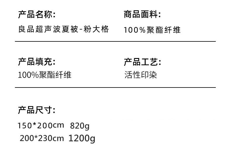 粉大格150*200cm 820g