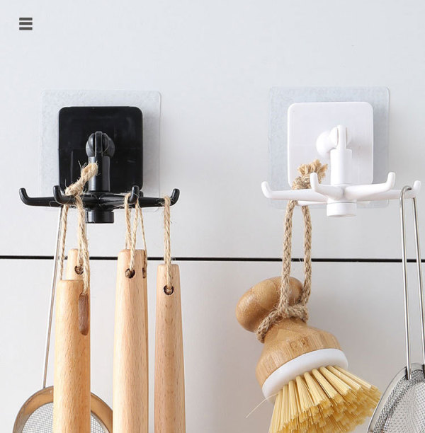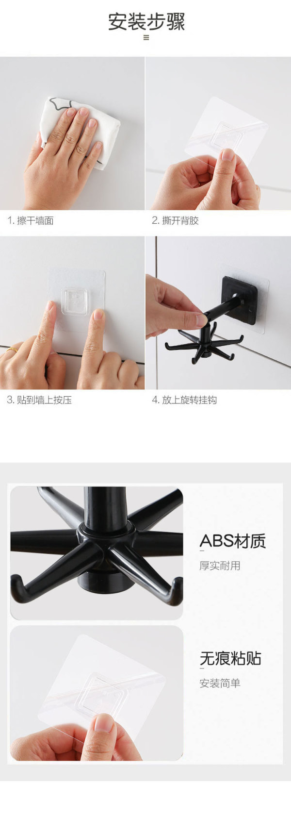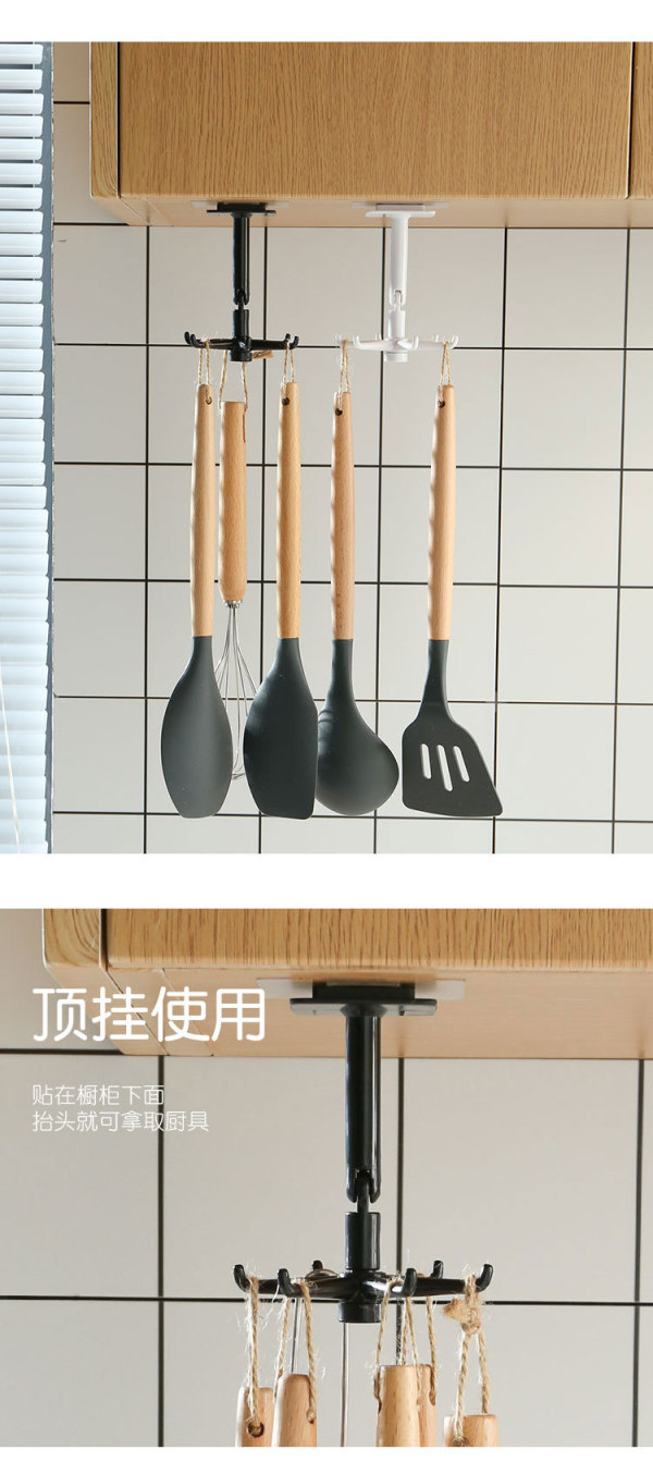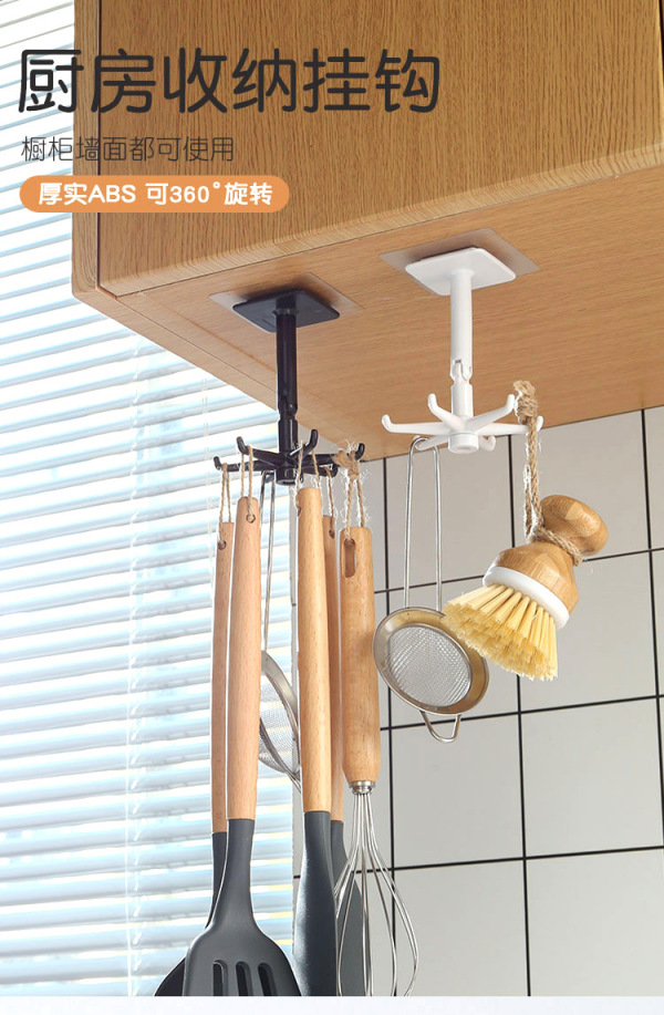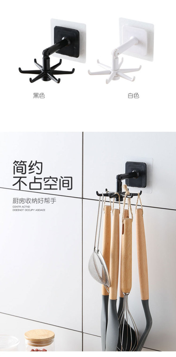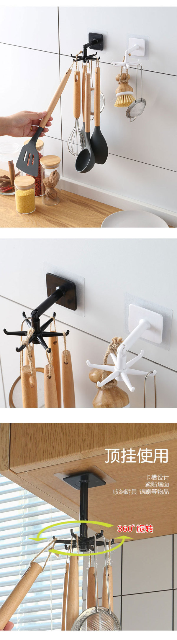 商品名称:熊诺多功能可旋转挂钩收纳挂架六爪无痕粘钩 免打孔厨房勺子粘钩6连钩
