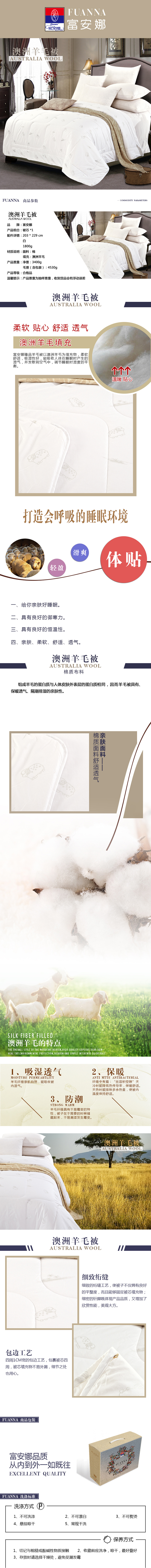 商品名称:【顺丰/德邦配送】FUANNA/富安娜澳洲羊毛被203*229cm 3400g