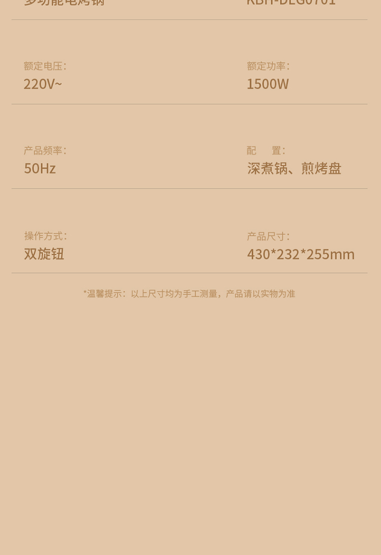 商品名称:【德邦配送】KOBACH/康巴赫4升多功能电烤锅KBH-DLG0701