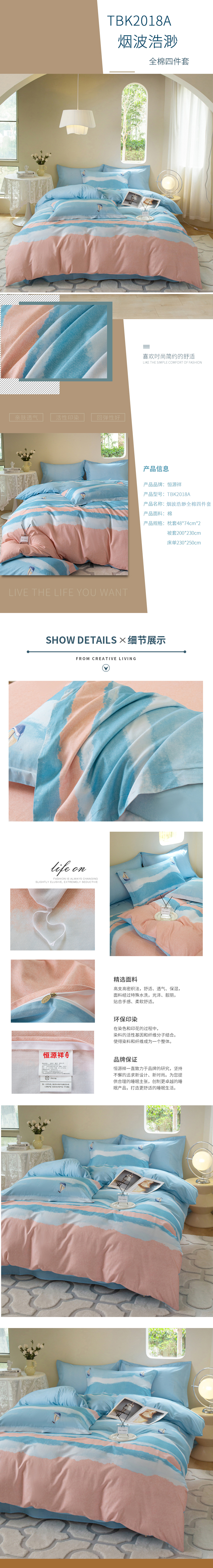 商品名称:【顺丰配送】恒源祥烟波浩渺全棉床品四件套200*230cm
