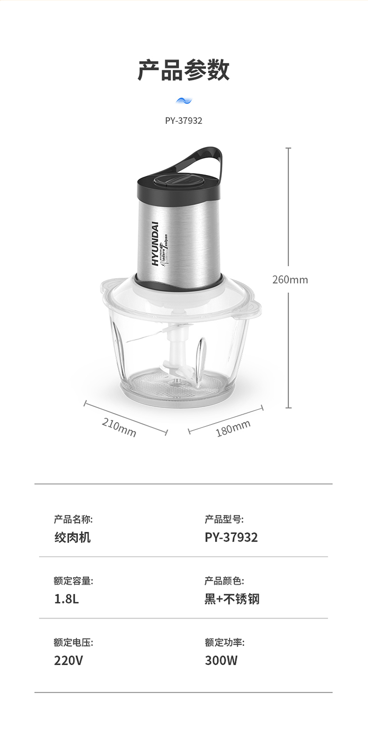 商品名称:HYUNDAI/现代1.8升绞肉机PY-37932