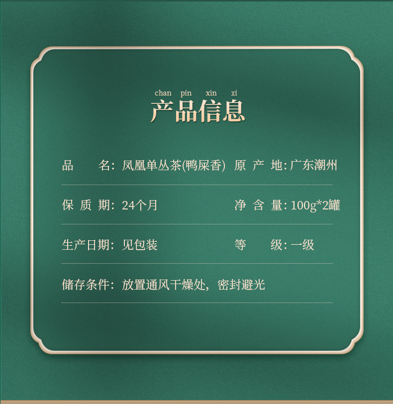 商品名称:良西农场鸭屎香凤凰单丛茶叶礼盒200g