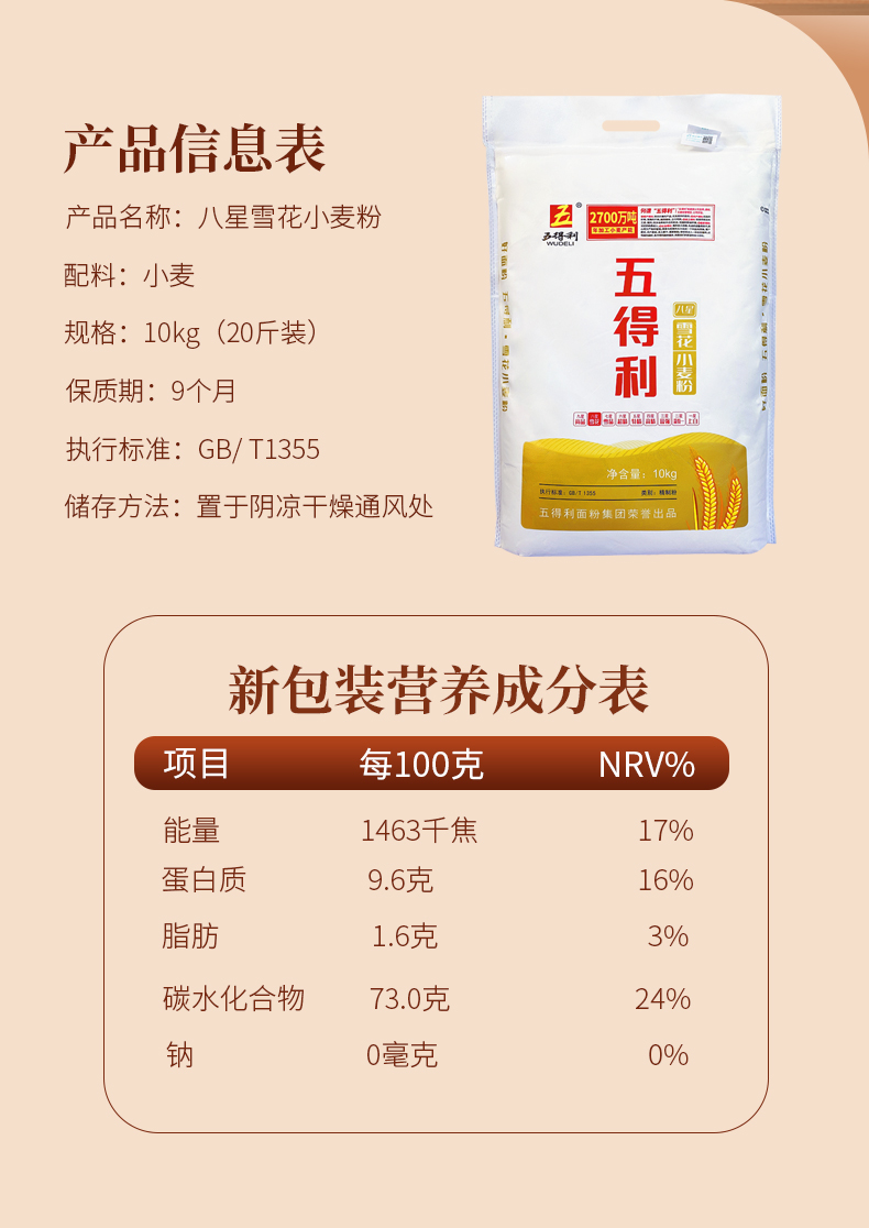 商品名称:五得利八星雪花小麦粉10kg